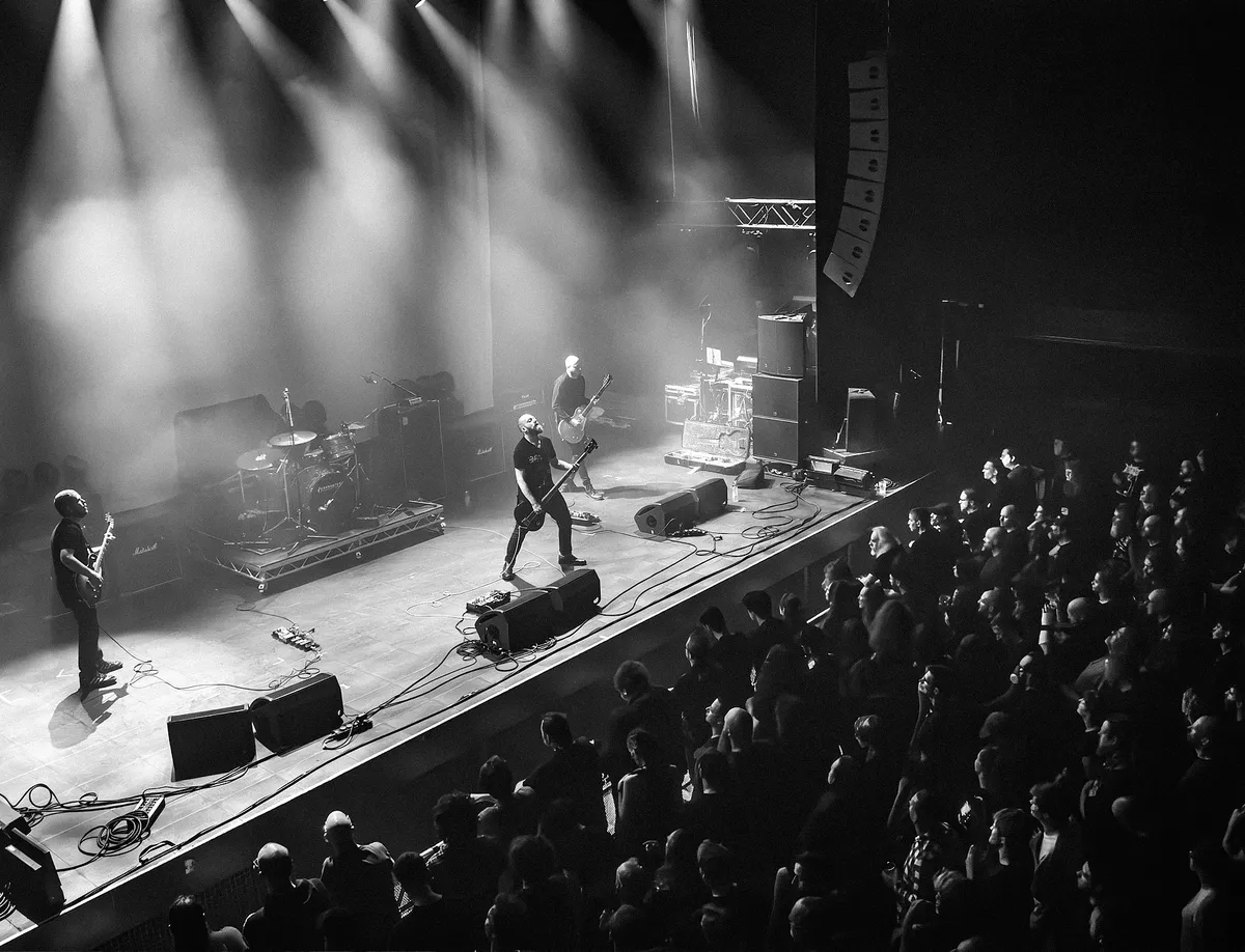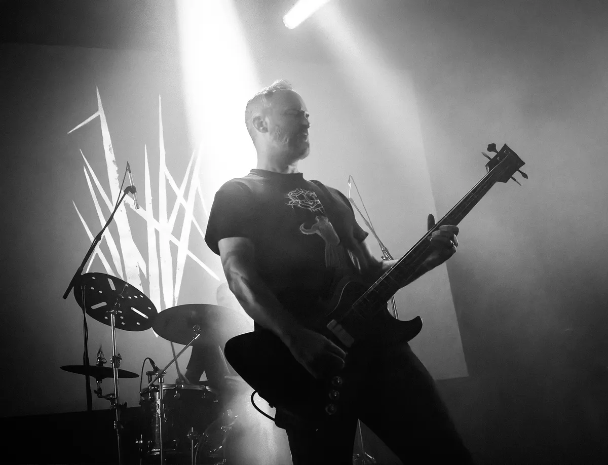 Het Britse Telepathy is allang geen onbekende meer: in 2019 zetten ze ook al een dijk van een show neer. Tijdens die show kregen we al een voorproefje van Burn Embrace (2020): bij de show van vandaag horen we vooral nieuw werk van Transmission (2025). Dit album is een stuk gevarieerder dan zijn voorganger, wat automatisch ook een veel dynamischere show oplevert. Zelf noemen ze het cinematic sludge metal: wij horen dat de toch al vage lijn tussen post-metal en post-rock bij Telepathy helemaal verdwijnt. Het nieuwe werk klinkt heerlijk, dus is het extra zuur als de show na ‘Tears in the Fibre’ een tijdje stil komt te liggen. ‘End Transmission’ maakt dat meer dan goed, al is een deel van de zaal dan al vertrokken naar de volgende act.