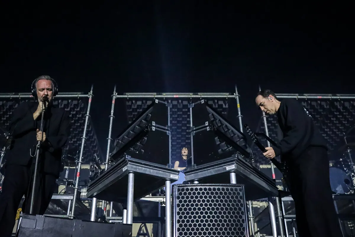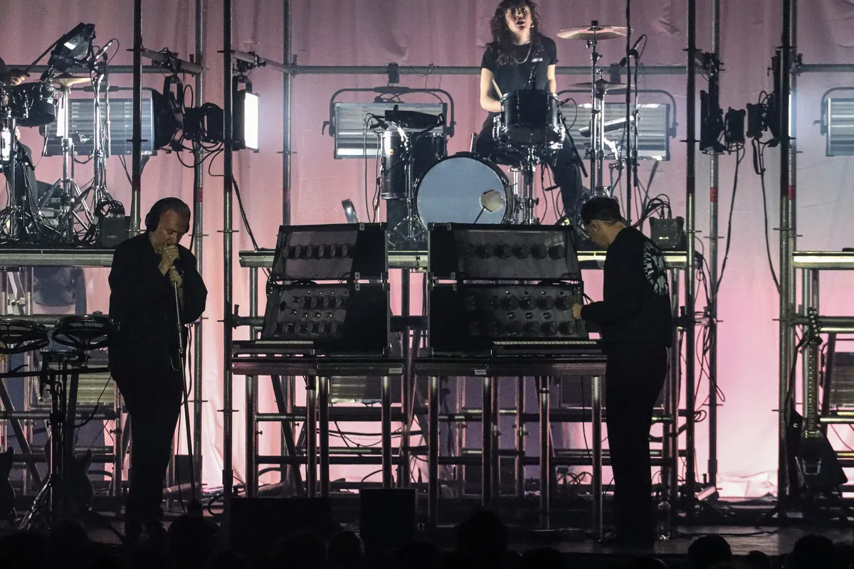 De set begint lichtvoetig met het postpunk-ademende, spacey ‘Hot Like Sahara’ (unreleased), en het dansbare synthpoppy ‘Idiots in Love’ (unreleased) en ‘Missing Wires’ (From Deewee). Denk aan de dromerige, melancholische synthpop van Nation of Language, maar dan met meer gedurfde, ritmische uitspattingen en opzwepende Kraftwerk-invloeden. De drummers dienen met hun solo’s ook als strakke overgang tussen verschillende nummers en kunnen op veel gejuich rekenen. Met de meeslepende, futuristische new wave-song ‘Is It Always Binary’ en het daaropvolgende ‘Krack’ (Nite Versions versie) wordt er geleidelijk wat steviger aangezet. Met neurotische synths, stuwende beats en vervormde vocalen weten ze de verschillende aanwezige generaties te verenigen op de dansvloer en verslapt onze aandacht geen enkel moment. De pompende beats en repetitieve trancey hooks van Nite Versions worden slim afgewisseld met de wat minder intensieve en meer disco- en funk-beïnvloede nummers van From Deewee waardoor het nergens in de set mogelijk eentonig klinkt. En ook klinken de nummers nooit precies zoals op de plaat en de overgangen als geïmproviseerde, spannende jams met de dynamiek van een dj-set.