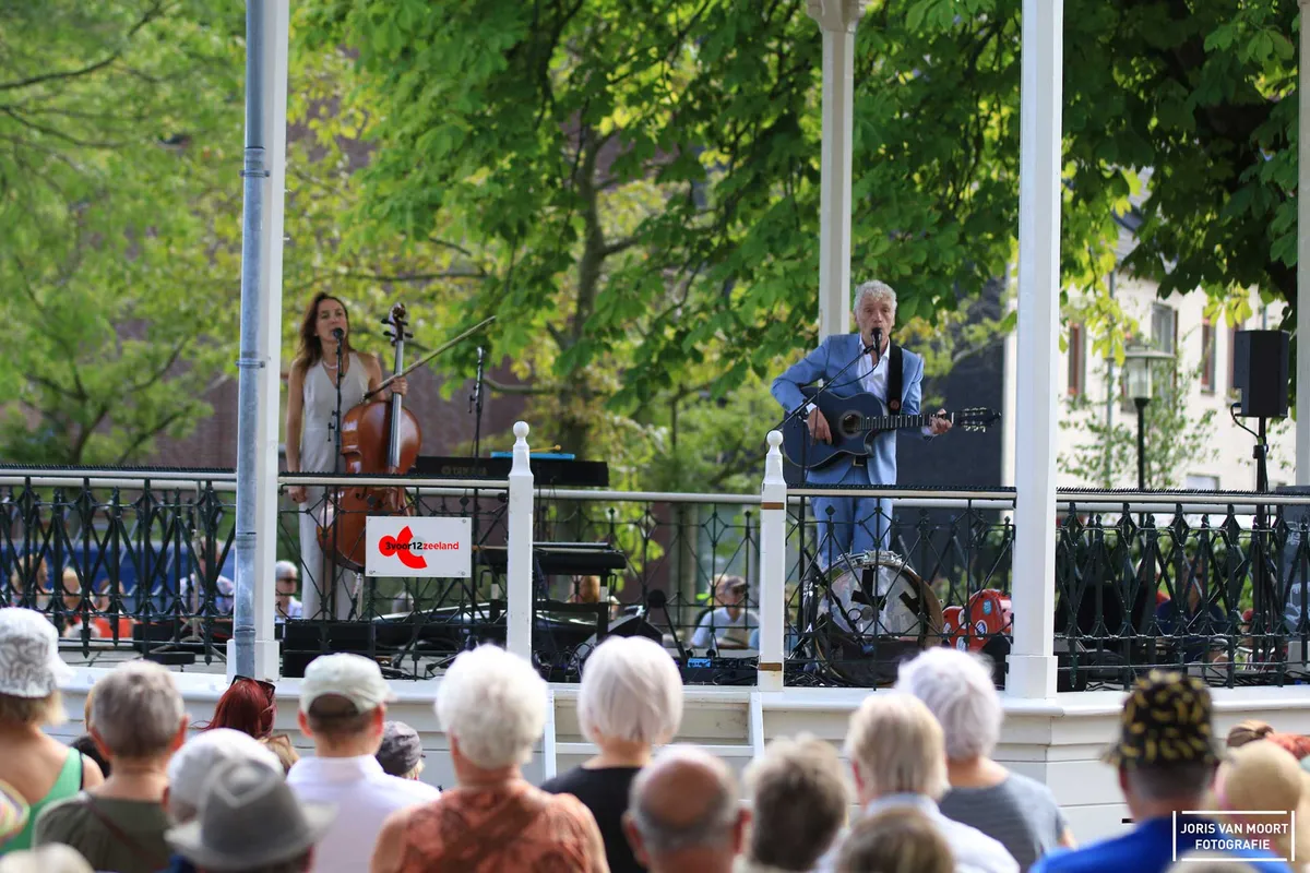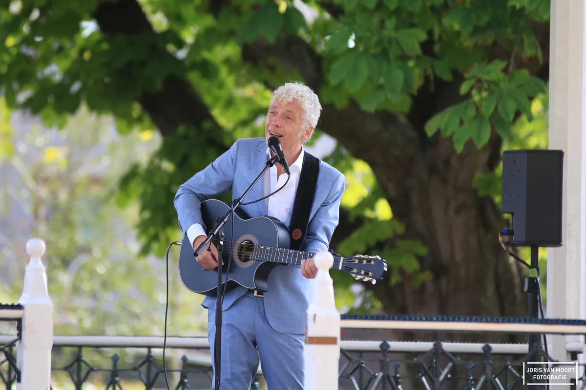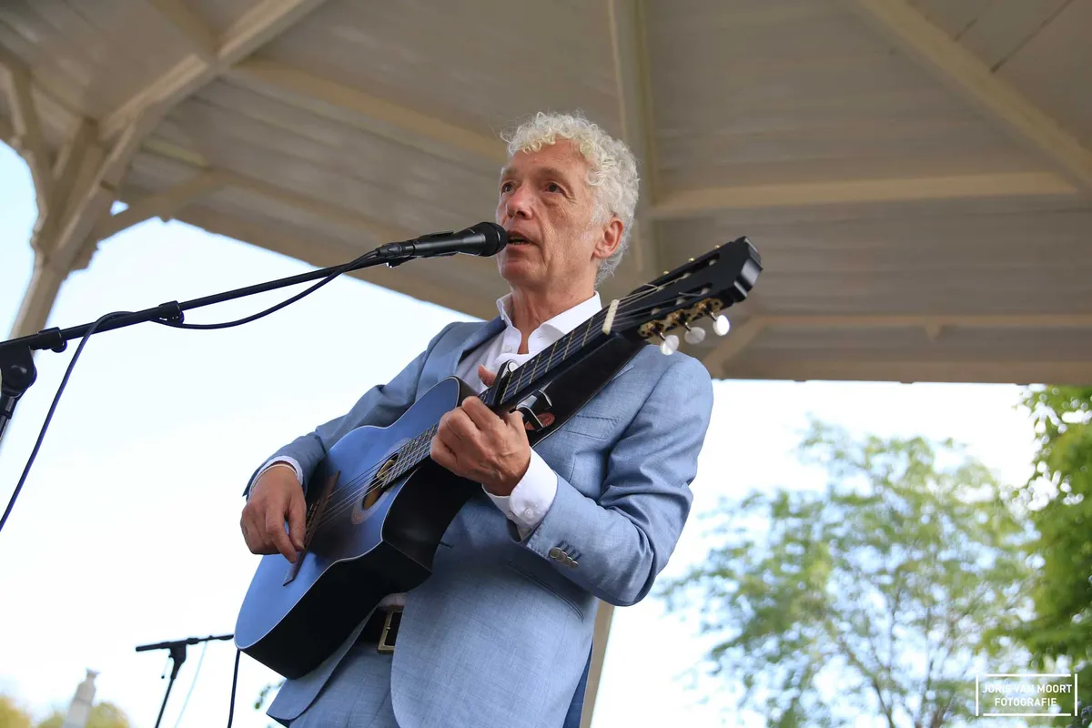 "Het is hier leuker dan een paar dagen geleden op Lowlands Festival (onderdeel bij wetenschapsprogramma)". In hoeverre deze uitspraak klopt is een tweede, maar wel een mooi compliment. Vanmiddag staat Erik de Jong, alias Spinvis, op het podium bij het Molenwater te Middelburg. Deze zomerconcerten vinden plaats in samenwerking met de Zeeuwse Concertzaal. Met 250 vooraf geplaceerde en verhuurde stoelen, zat merendeels van het publiek aan de randen van het park. De schatting van ruim het dubbele aan bezoekers weten de muziek van Spinvis te waarderen. Met het zevende album 'Be-Bop-A-Lula' als recenste plaat gaat Spinvis samen met zijn band komend najaar de zalen in. Vanmiddag speelt hij alleen samen met Saartje van Camp een tiental liedjes. Van het mooie 'Oostende' tot 'Dageraadsplein'. Het publiek, jong en oud, is vrijwel het gehele optreden stil. Gelachen wordt er als Spinvis een Duitse versie van 'Ik wil alleen maar zwemmen' inzet, maar al vlug overgaat op het Nederlands. "Ik ken alleen het eerste couplet in het Duits." Uiteraard volgt na een set van anderhalfuur, 'Kom Terug'. Een succesvolle middag kunnen we concluderen.
