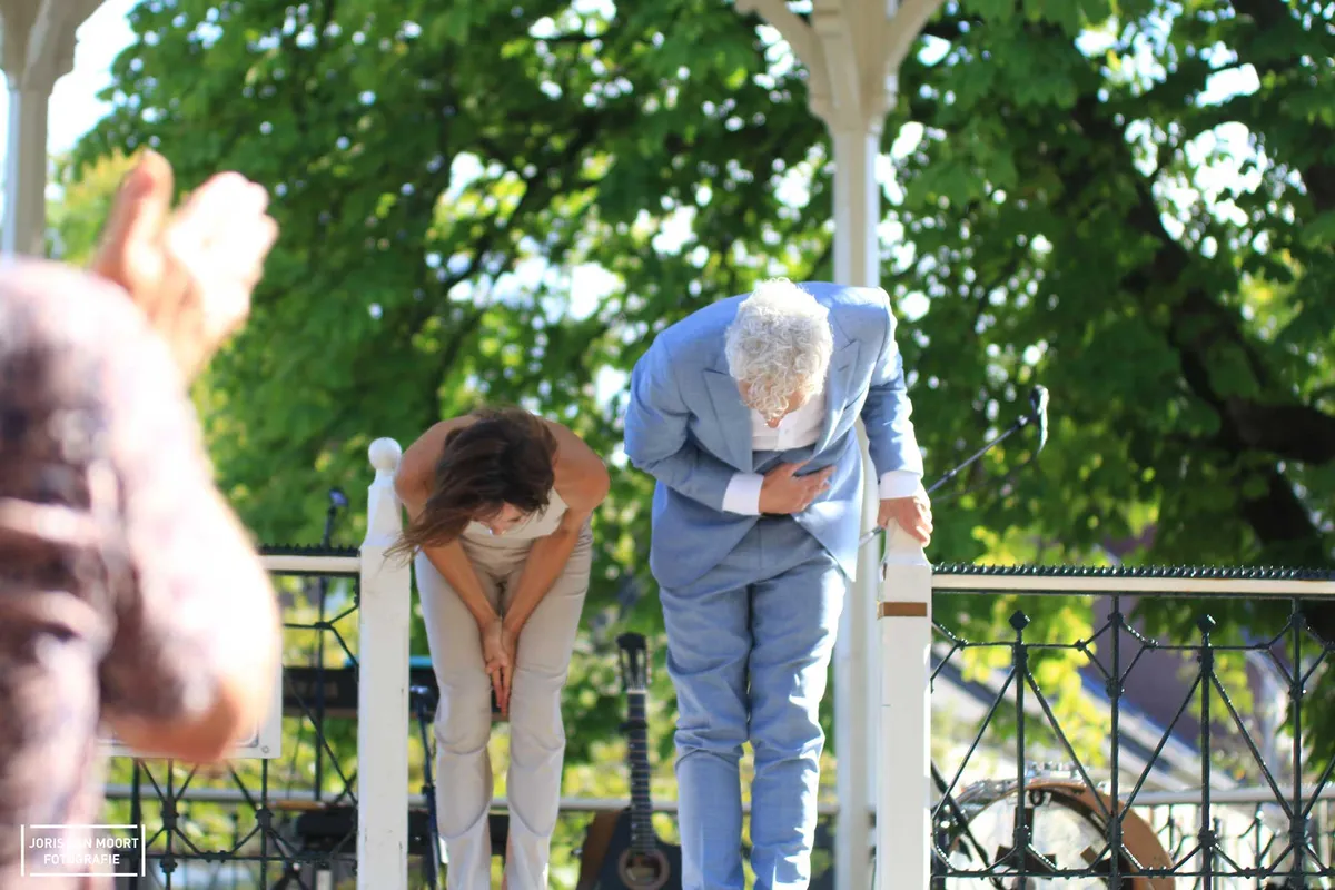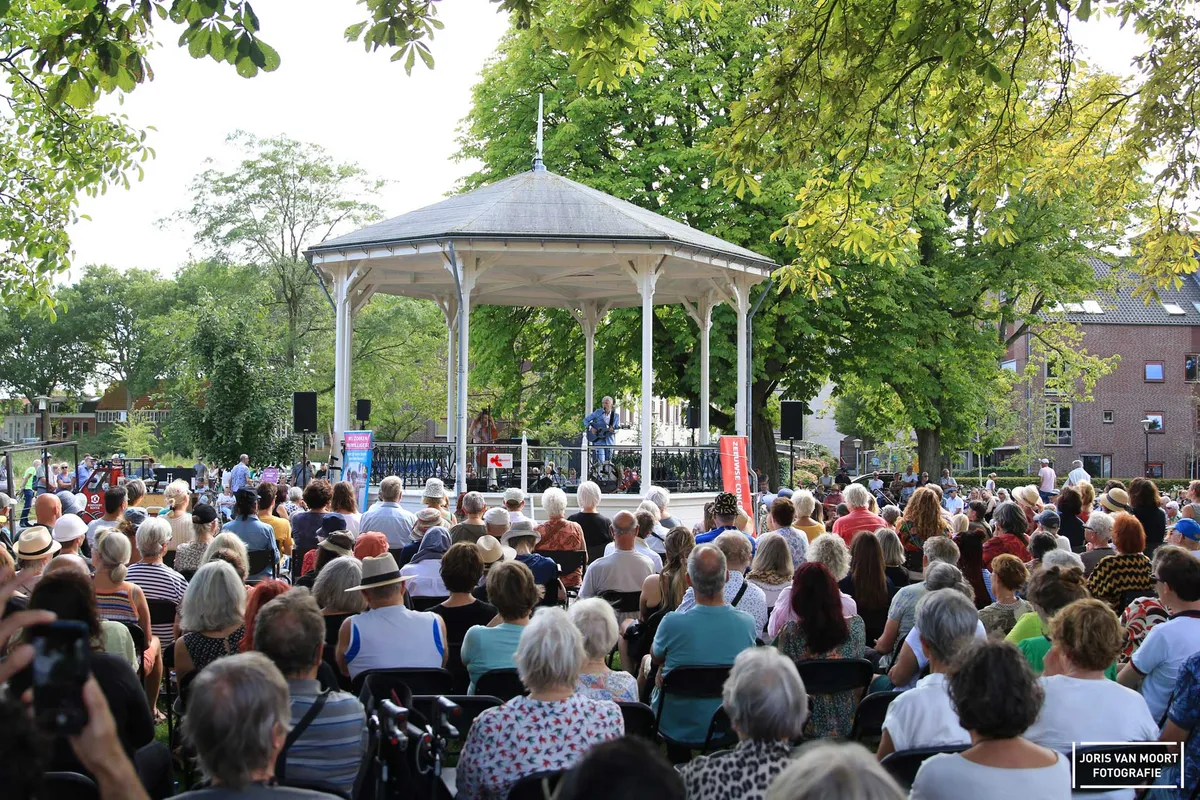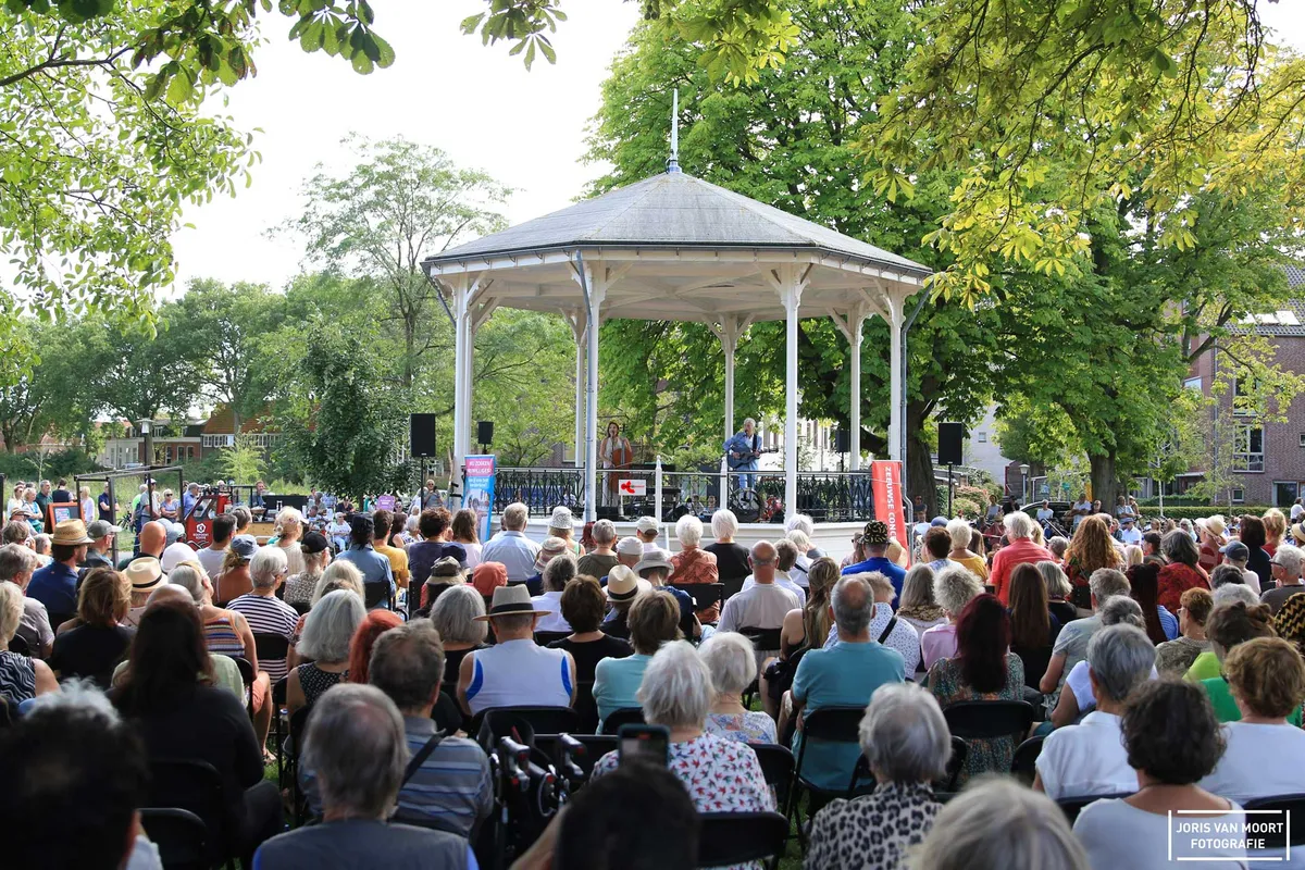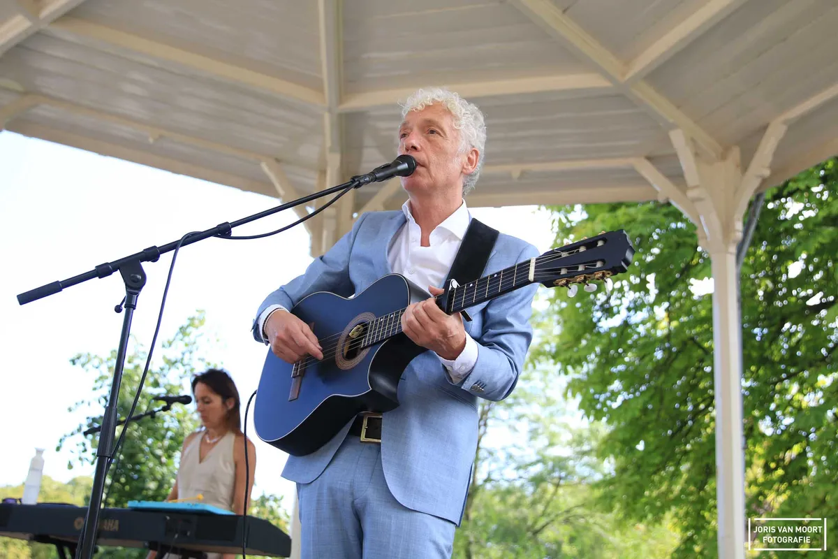 "Het is hier leuker dan een paar dagen geleden op Lowlands Festival (onderdeel bij wetenschapsprogramma)". In hoeverre deze uitspraak klopt is een tweede, maar wel een mooi compliment. Vanmiddag staat Erik de Jong, alias Spinvis, op het podium bij het Molenwater te Middelburg. Deze zomerconcerten vinden plaats in samenwerking met de Zeeuwse Concertzaal. Met 250 vooraf geplaceerde en verhuurde stoelen, zat merendeels van het publiek aan de randen van het park. De schatting van ruim het dubbele aan bezoekers weten de muziek van Spinvis te waarderen. Met het zevende album 'Be-Bop-A-Lula' als recenste plaat gaat Spinvis samen met zijn band komend najaar de zalen in. Vanmiddag speelt hij alleen samen met Saartje van Camp een tiental liedjes. Van het mooie 'Oostende' tot 'Dageraadsplein'. Het publiek, jong en oud, is vrijwel het gehele optreden stil. Gelachen wordt er als Spinvis een Duitse versie van 'Ik wil alleen maar zwemmen' inzet, maar al vlug overgaat op het Nederlands. "Ik ken alleen het eerste couplet in het Duits." Uiteraard volgt na een set van anderhalfuur, 'Kom Terug'. Een succesvolle middag kunnen we concluderen.