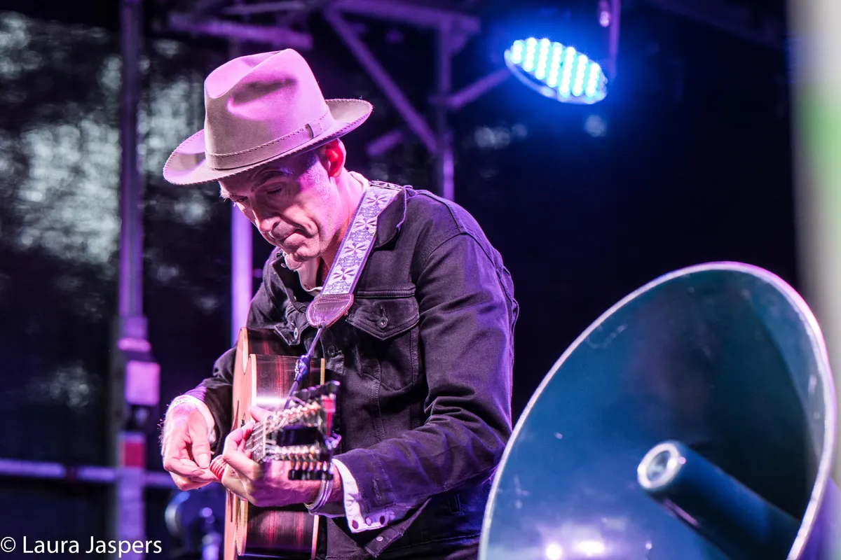 Dyzack neemt het Future Stage daarna over. Hagenees Erik Hofland doet het als Dyzack alleen, als echte one-man-band. Dyzack toont meteen zijn gitaarkunsten op een 12-snarige gitaar bij een stil, rustig instrumentaal nummer dat vooral voor de geluidsman bedoeld is. Zijn andere instrumenten komen voor een deeltje uit een laptop, het drumpedaal en de baslijnen uit de opvallende megafoonachtige speaker. Hij maakt een fijne mix van roots, americana, blues en folk. Tof is het megatrage “nummer voor ADHD’ers”. Een leuk, sympathiek intermezzo tegenover de grotere namen op Main Stage.