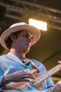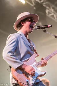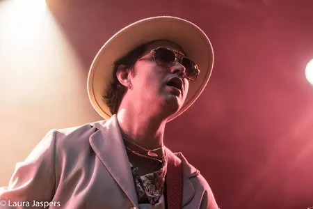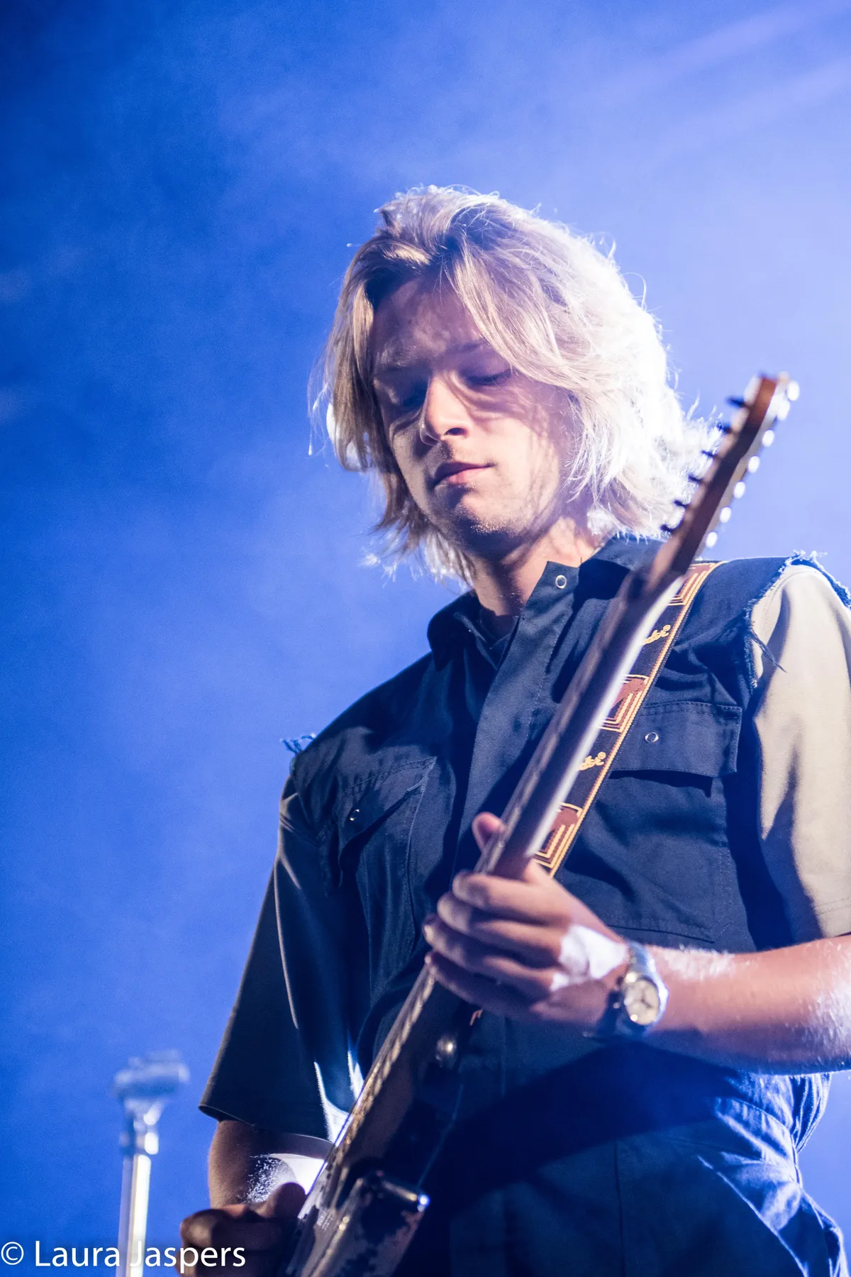 Breda staat volgens Jett Rebel écht bekend om twee dingen: de min of meer geboorte van Elvis (Elvis’ manager Colonel Tom Parker kwam uit Breda) en de vintage kledingwinkel ‘J’adore Vintage’ waarvan eigenaar Suus een shout-out krijgt. Jett haalde er het kekke pak dat hij vanavond draagt. Waarvan akte. Jett Rebel houdt het basic, simpelweg drums (Kees Schaper), bas (Xander Vrienten, zoon van Henny Vrienten) en zang/gitaar. En dat pakt uiterst effectief uit, alle instrumenten krijgen dik de ruimte en tijd om te stralen. Vooral Jett steelt de show met zijn spel en dansen met de draadloze gitaar en rockposes. Muzikaal zit het allemaal zeer goed in elkaar. Hij baalt van de 2,5 jaar niet spelen tijdens corona, maar Breda Barst moest acht jaar wachten op weer een Jett Rebel show. “Dat is echt focking lang!” Het publiek is het daarmee duidelijk eens en danst en zingt met de man mee. De band speelt flink wat nummer van ‘Pre-Apocalypse Party Playlist’ uit 2021 en oude knallers als ‘Louise’, maar dan minder springerig poppy en meer volwassen en aangepast aan deze rock ’n roll show. Want dat is het, een lekkere, funky rock ’n roll show.
