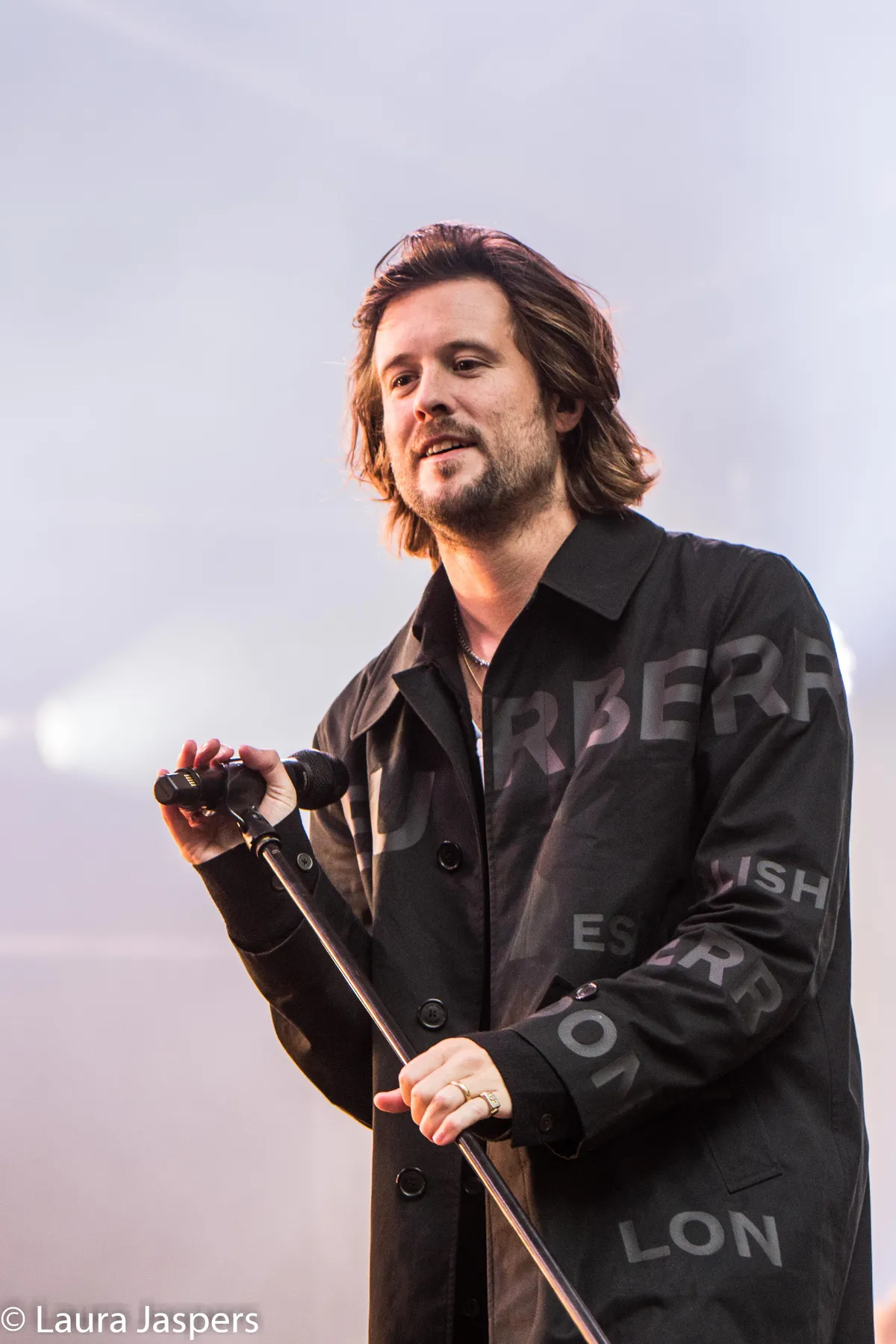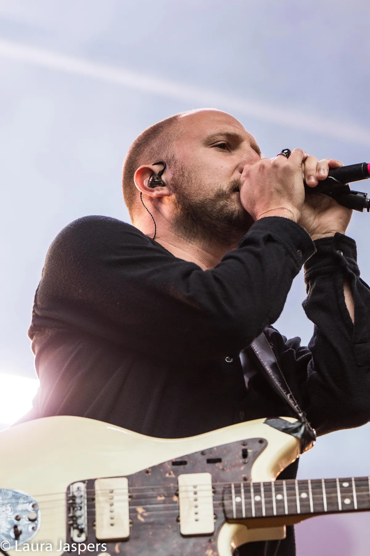 “Het is nie waar he?” Frontman Mathieu Terryn baalt van de regen, het is tijdens de hele set van Bazart droog geweest maar ook bij hen is het raak. Niet dat het iets uitmaakt: “Fuck de regen, we gaan hem gewoon wegspringen!” En dat lukt, want start het buitje bij ‘Maanlicht’, als de song voorbij is, wordt het weer wat droger. De zin “Dit is niet wat ik voor ogen had” uit ‘Maanlicht’ sluit er wonderwel op aan. Bazart sluit haar festivalseizoen af op Breda Barst en doet dat heel goed. De band van drie is uitgebreid met drie muzikanten, zoals Triggerfinger drummer Mario Goossens, en heeft dat volle geluid en allure van een festival headliner. We hebben wel wat inlevingsvermogen nodig. Want Terryn geeft aan dat het nadeel van de vele samenwerkingen van Bazart, dat artiesten als Eefje de Visser (‘Onder Ons’) en S10 (recente hit ‘Onderweg’) er bij optredens vaak niet bij kunnen zijn. Maar goed, we mogen zingen als Eefje of Stien. “Jullie kunnen dat.” En dat klopt. De bezoekers van deze B’day Bash kennen de nummers en hoeven niet te wachten op slotnummers ‘Goud’ en ‘Denk Maar Niet Aan Morgen’ om uit hun dak te gaan bij Bazart. Het is springen in de regen.