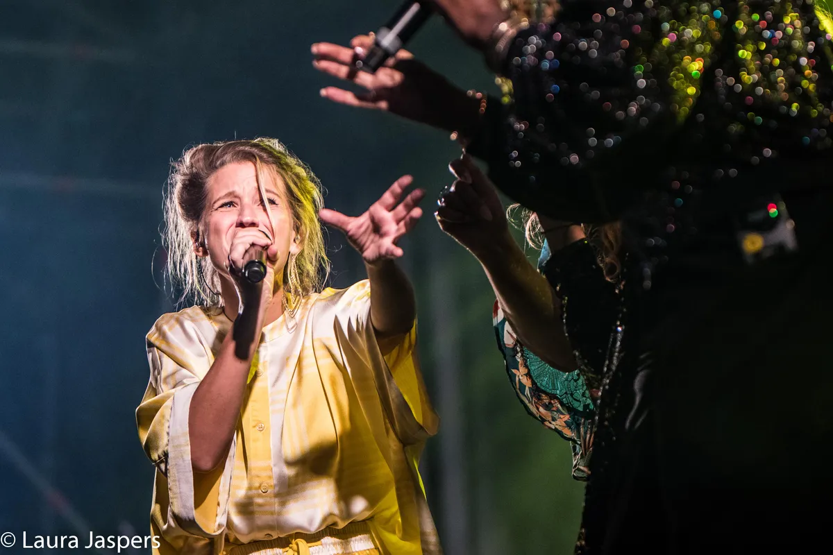 Selah Sue als headliner op het Main Stage bij Breda Barst in het Valkenberg terwijl het donker is, dat is waar velen op gewacht hebben. Wij in elk geval wel. De Vlaamse is een heel grote madam en opent direct met een coole hiphop track en zware beats. Met haar volledig eigen stem, manier van zingen en deze bezetting, inclusief drie achtergrondzangeressen, staat er met Selah Sue echt een act van wereldformaat op het podium. Het speelplezier spat er vanaf: de mooiste momenten zijn als Selah Sue met haar zangeressen samen zingt, of over het podium danst in een langgerekt funky slot van een song. De set gaat van vrolijk en soulvol naar donker en serieus. Jazzy, funky en vol soul. En ook de regen laat zich, helaas, weer even zien. Net als Mathieu Terryn daagt ze het publiek uit dan extra hard te springen, wat ook lukt. Het regent ook hoogtepunten, van Selah Sue die alleen op gitaar ‘Raggamuffin’ start waarbij de band haar later bijvalt, tot het emotionele en toch opgewekte ‘PILLS’ en uitsmijter ‘This World.’ En ook uniek: fan Bas vraagt “zijn Sanne” vlak voor het einde van de show ten huwelijk. De B’day Bash had prachtige optredens, veelbelovend voor de rest van deze jubileumeditie van Breda Barst.