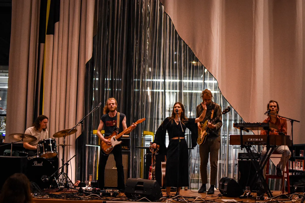 Ach, het is wel lief. In een collegesetting nemen we weer plaats in de LocHal, de Tilburgse stadsbieb, waar zangeres Hanne met haar band Zuster Zonnebloem op blote voetjes dartelt over een gigantische tafel. Normaal gesproken studeren daar bollebozen aan, nu is het terrein voor een groep muzikanten die waarschijnlijk over zichzelf zeggen dat ze in de verkeerde tijd geboren is.
