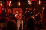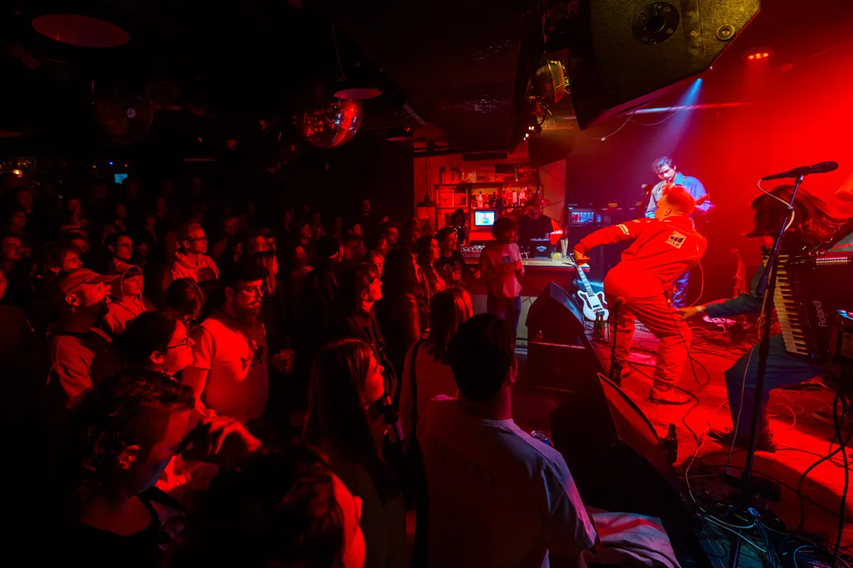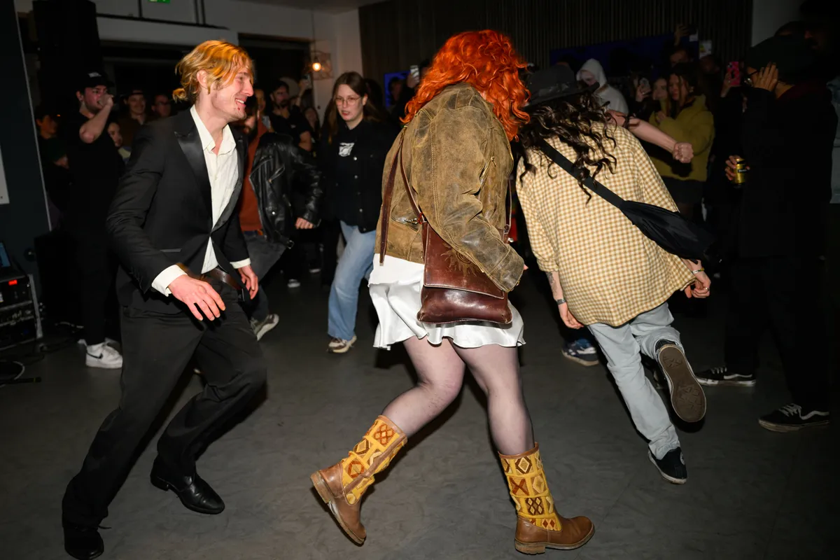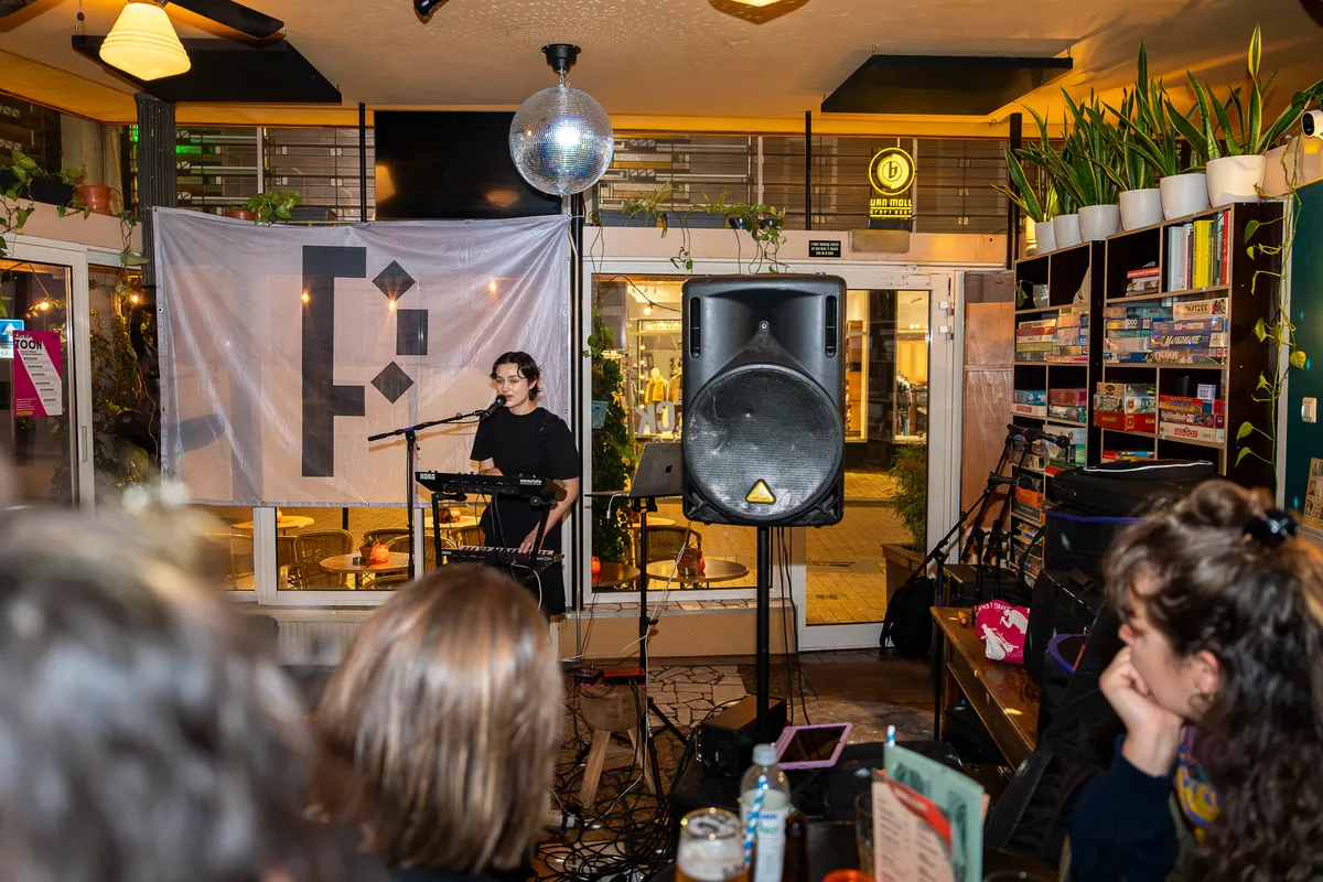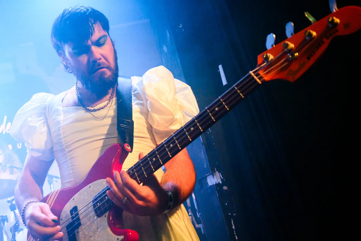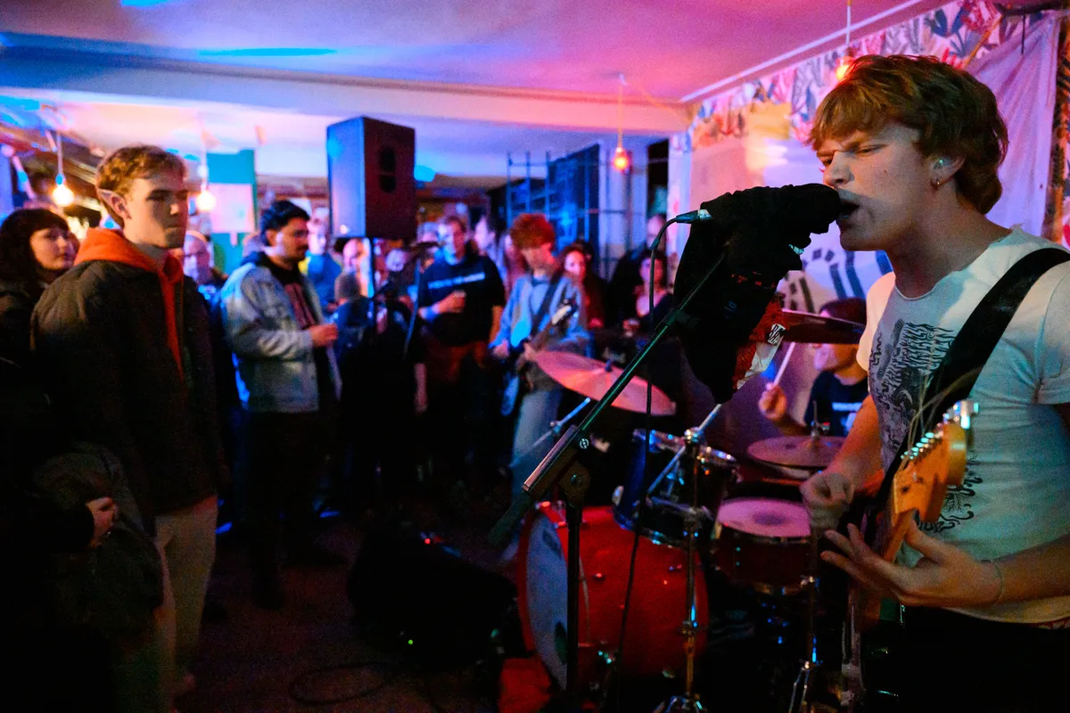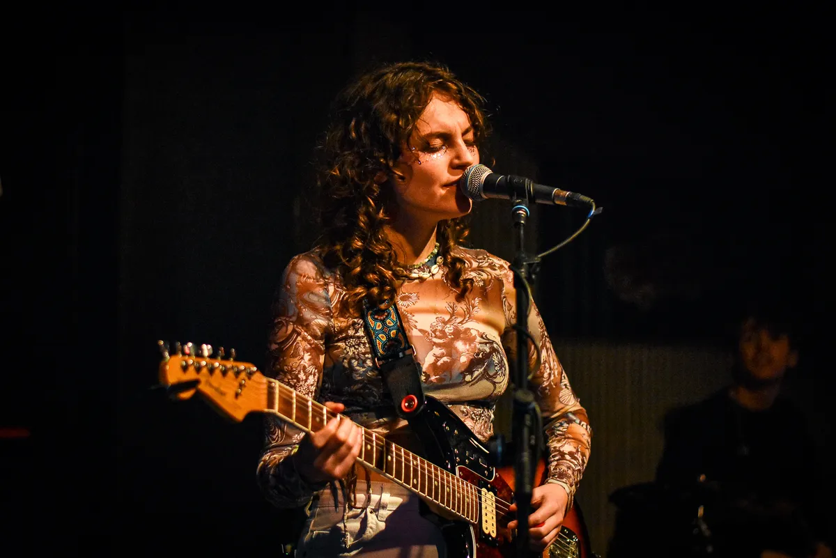 From//october, het geesteskind van Dion Tiktak, is typisch zo’n band die het goed doet op je noise-cancelling koptelefoon: dromerige, lo-fi indiepop, die je langzaam meevoert naar je binnenste zelf en die – inderdaad – goed gedijt in de herfst. Muziek voor gevoelige millennials, kortom, maar die zijn op het eerste oog niet ruim vertegenwoordigd in De Vos en de Craen; aan een statafel slurpen luidruchtige studenten glazen wodka-cola leeg, een verdwaald groepje boomers vraagt zich licht vertwijfeld af wat er toch aan de hand is in hun favoriete borrelcafé. Op het podium trekt de vierkoppige band (die eerder dit jaar de EP As Time Went By uitbracht) zich er niets van aan: die werkt ingetogen, met zichtbaar plezier de zorgvuldig opgebouwde setlist af. De op het eerste gehoor helaas niet erg onderscheidende indiepop van het viertal valt aanvankelijk wat dood in de matig gevulde ruimte, maar als tegen het einde van de set het tempo gestaag wordt opgeschroefd en langzaam maar zeker de eerste scheurtjes ontstaan in het zorgvuldig opgebouwde, eerder nog wat kleurloze canvas, weet de band de inmiddels aardig volgelopen kroeg dan toch bij de kladden te grijpen. (JP)