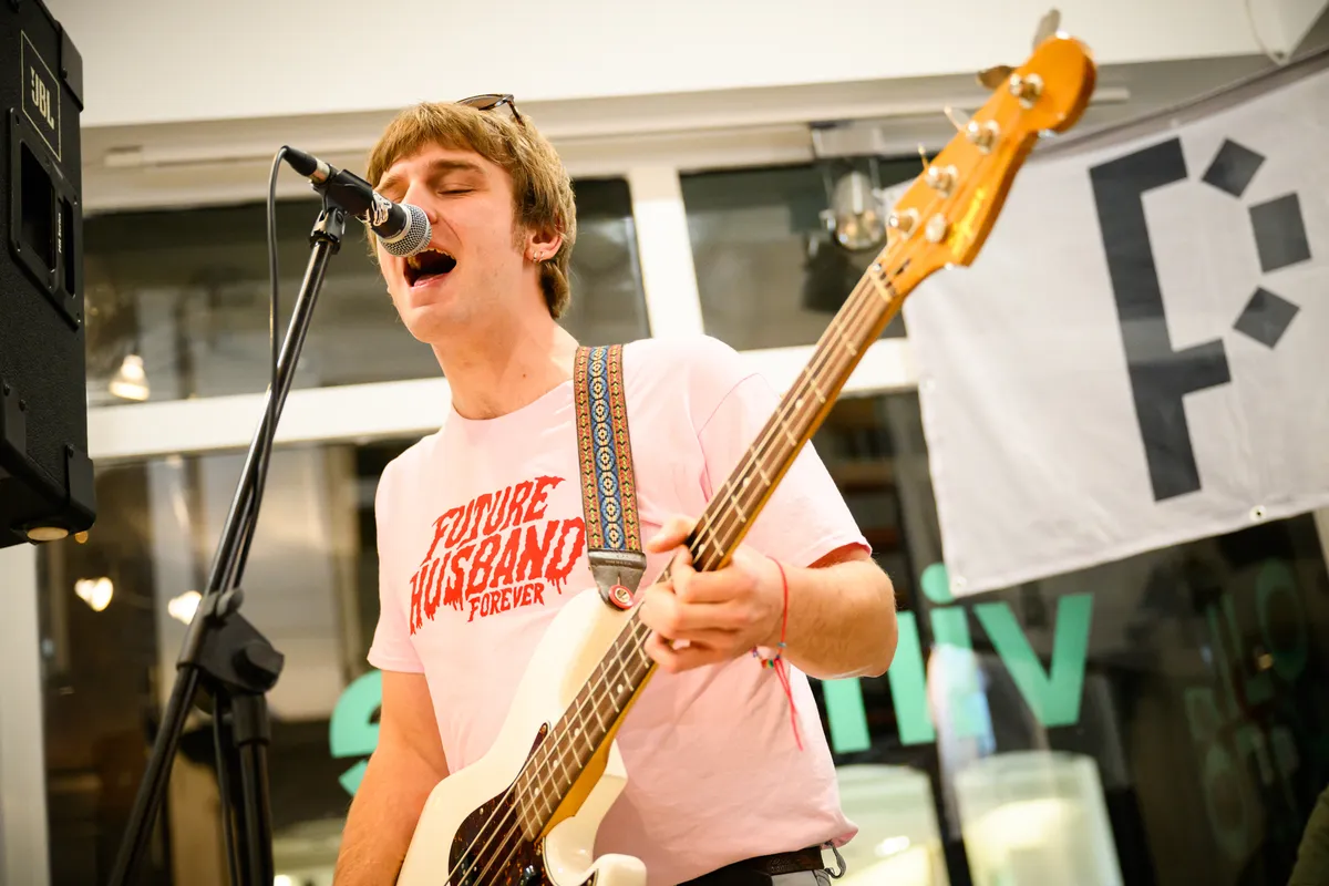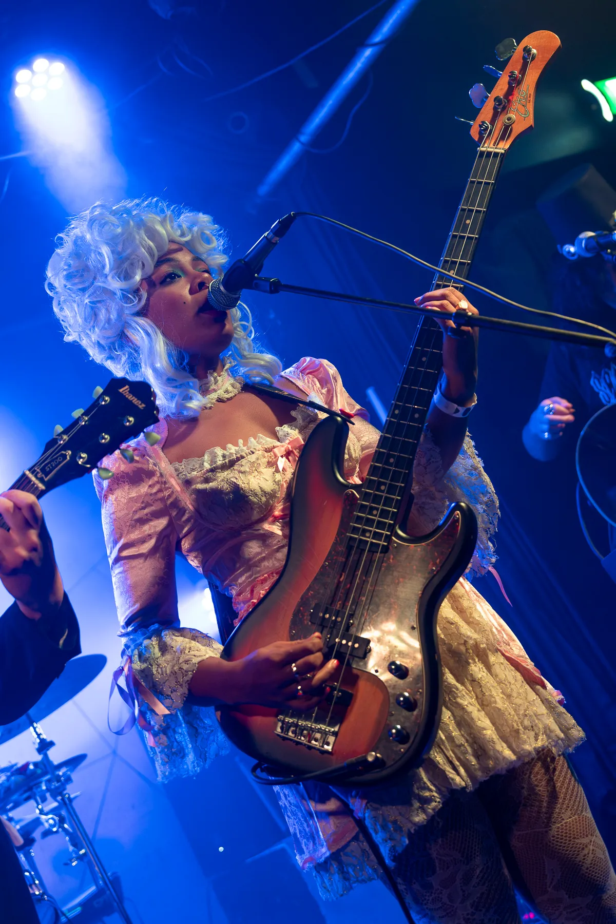 Je baant je een weg door de herfstbladeren buiten bij de Korte Heuvel, maar in Cul de Sac krijgt synthy indiepopband Future Husband het voor elkaar om een festivalzomergevoel neer te zetten. De Amersfoorste band, nu gehuld in Halloween-kledij, overtreft de herfstsfeer met hun melancholische, dromerig randje. Zangeres Adura Sulaiman heeft een prachtige pruik op en heeft haarzelf omringd met de ‘met zwart gehuld om de ogen band'. Normaal moet ze het publiek tot stilte manen voor haar zachte, breekbare nummers, maar hier in de Cul is dat niet nodig; de zaal luistert ademloos en aandachtig.