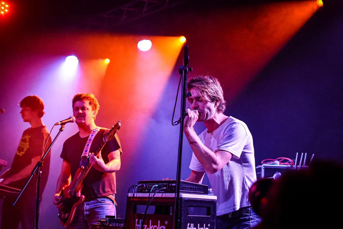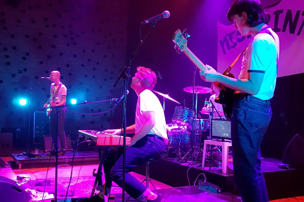 "Spinvis!", hoor ik je dan luidruchtig denken. En daar heeft dit viertal vast wel eens naar geluisterd, maar welke act doe je nou nog een plezier met die vergelijking? Frontman Tom Verstappen is bovendien helemaal geen introverte zonderling, maar heeft de theatrale schwung en humor van Thijs Boontjes. Zodra hij ook maar even achter de toetsen vandaan kan huppelen, maakt hij optimaal gebruik van de ruimte in RAW.