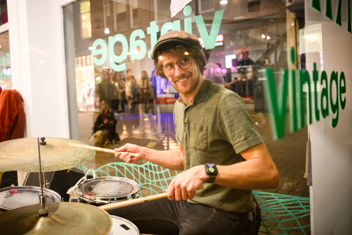Een vintagekledingzaak als podium met een band die een vintage geluid produceert? Het had zo moeten zijn. In KiloKilo Vintage is het aan de de drie mannen van Sol Power om met een (eind) jaren zestig-sound een vrolijke sfeer neer te zetten deze donderdagavond. Dat lukt goed met het dansbare ' High Wire' dat meerdere voetjes los van de vloer krijgt. Wat helpt is de basgitaar die tussen alles door hopt en een drummer die met zo'n grote glimlach en vol beweging een gevulde KiloKilo met hem meeneemt. Stuk voor stuk zijn het allemaal leuke liedjes, maar net zoals je in een vintagewinkel soms door heel veel leuke kledingstukken moet gaan om tot een bijzondere te komen, zo moet Sol Power ook nog schaven aan hoogtepuntjes om nog meer op te vallen bij Popronde. (FvdK)