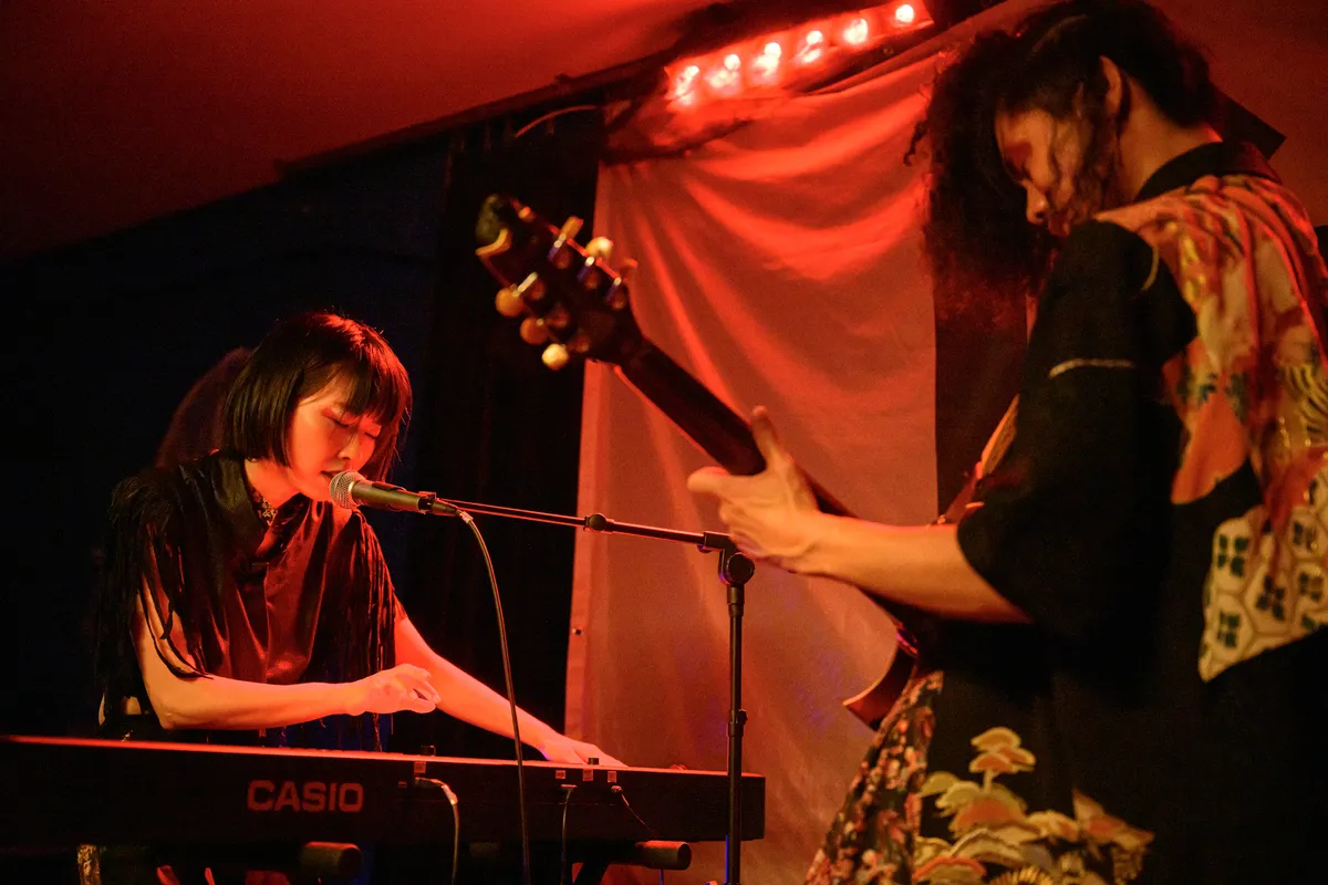 ENJAKU YOYO is energiek, alternatief en zet de propvolle kelder van De Nieuwe Vorst op zijn kop. Het publiek begint ietwat verlegen, terwijl Jun en Koko, samen ENJAKU YOYO, vanaf moment één het allermeeste geven. Er is geen moment om bij te komen bij deze verbijsterende, zichzelf omschrijvende technopop, act. Paspophoofden omwikkeld in rode organza worden halverwege de show heftig in de rondte bewogen door Mario (ja, echt Mario) en uiteindelijk het publiek in gegooid. Iets wat meer afleidde dan toevoegde aan deze muzikaal ijzersterke act. Het duo is goed op elkaar ingespeeld en maakt samen ongekend veel (goede) herrie. Een deel van het publiek beweegt enthousiast mee en een ander deel kijkt gefascineerd toe; voor iedereen is hier plek. Aan het einde van de set is de kelder een benauwde ruimte geworden, maar het publiek had duidelijk nog wel meer willen horen (Yo! Yo!) (AK)