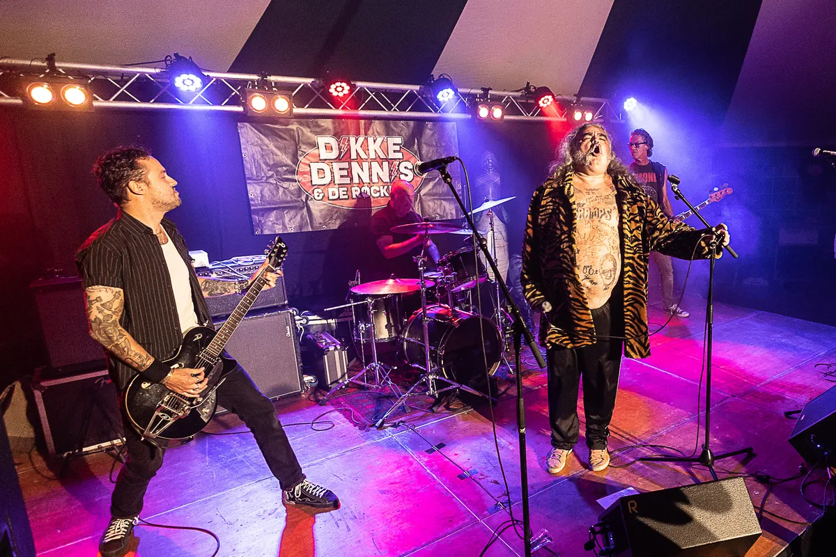 Rond 20.00 uur komt er een stormloop van mensen het terrein op. Binnen een half uur zijn er rond de tweeduizend mensen bijgekomen. Allemaal om hun favoriete act van het festival te zien. Pé Daalemmer en Rooie Rinus. Het is een hele bijzondere act. Er wordt gebruik gemaakt van één gitaar en beide heren zingen. Je zou kunnen verwachten dat het daardoor heel leeg klinkt maar niks is minder waar. Pé en Rinus beginnen hun show en het publiek gaat met ze mee. Ze zingen de hits Baukelien, Hoornseplas en andere nummers veilloos mee. Eigenlijk is het ook een stukje cabaret, want bij de meeste liedjes wordt een verhaal vertelt. Als Pé en Rinus klaar zijn met hun reportoire is de sfeer vrolijk en dat is aan de beide heren te danken. Door naar de tent waar Dikke Dennis en de Rockers een feestje bouwen. Dikke Dennis is een verschijning, gooit de microfoon meerdere keren in de lucht, op de grond. Tot grote ergernis van de geluidstechnici. Maar Dikke Dennis is rebels. Het vermaken van publiek is zijn specialiteit, een grote pit voor het podium wordt gebouwd. Een opblaasdinosaurus gaat door de lucht. Niks is gek genoeg. De palen van de tent staan letterlijk te trillen. Bezweet, voldaan en misschien hier en daar wel een blauwe plek vanuit de moshpit gaan we naar huis om ons klaar te maken voor dag drie.