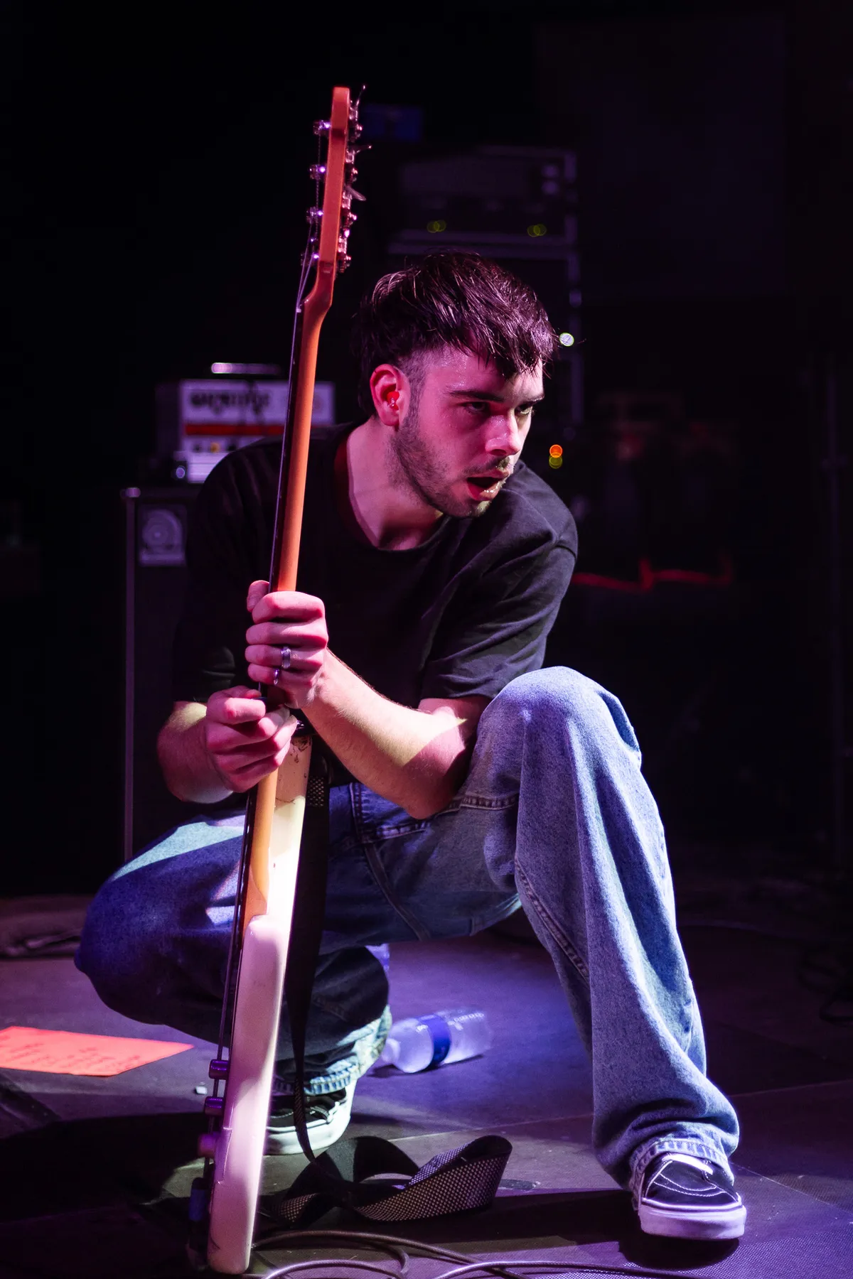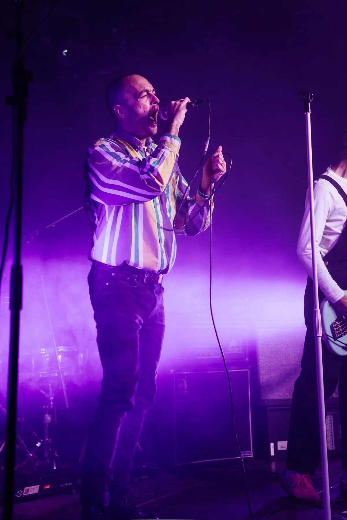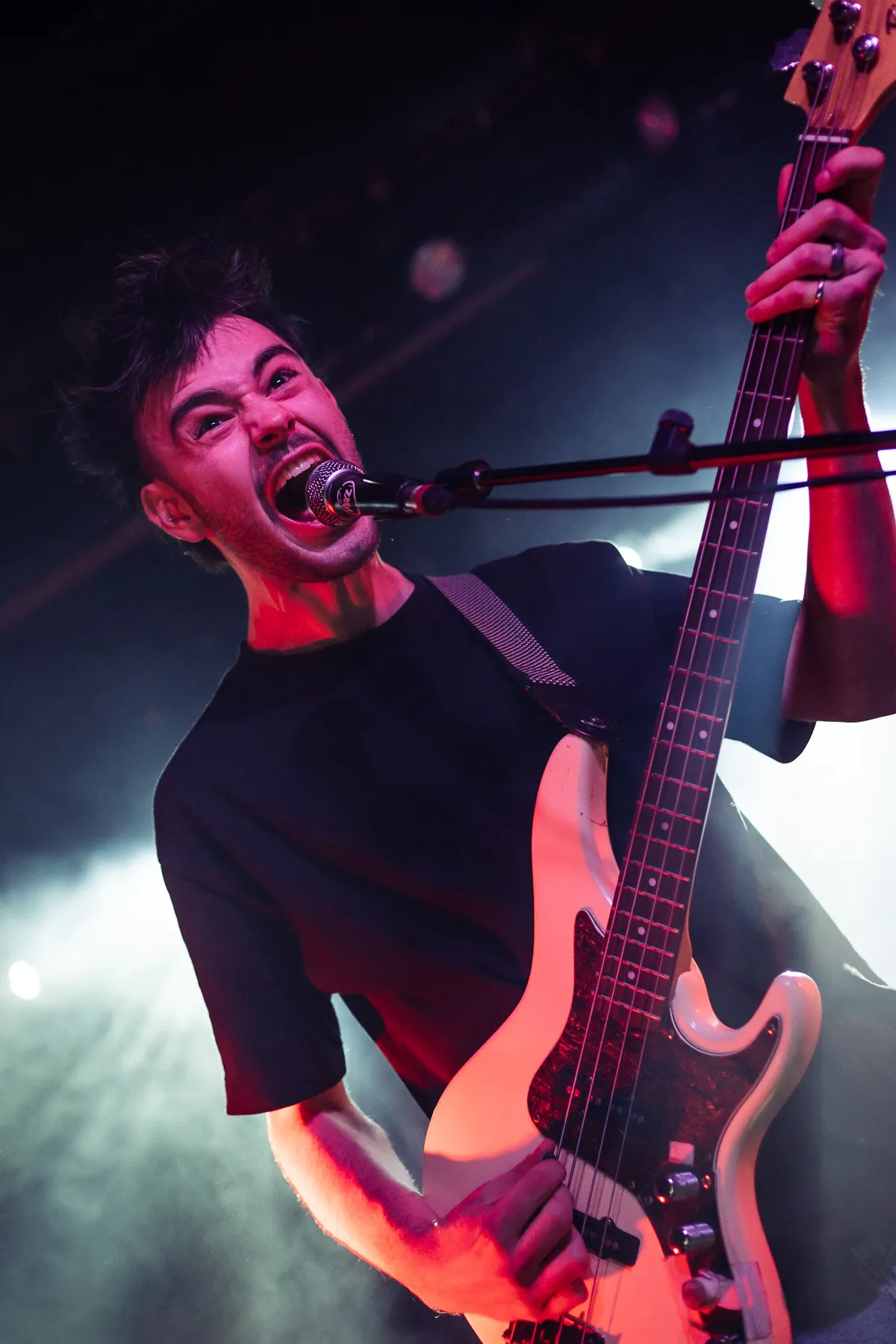Voordat de hoofdrolspelers vanavond de planken van de koude zaal – die trouwens eerder aan een grote garagebox doet denken – van Club AFF betreden, warmt Gull House de boel op. Gloednieuw en punk zoals punk bedoeld is: snel, hard en compromisloos. Terwijl wij ons naar de bar haasten voor een Duvel, rammen ze er in zes minuten moeiteloos vier nummers doorheen. Geen tijd voor gepraat of pauzes, gewoon een halfuurtje vol gas. Kortom: Gull House weet hoe je een zaal op temperatuur krijgt. Wat meteen opvalt vanavond: hoeveel jongeren hier zijn. En sowieso, het is gewoon druk. Niet vanzelfsprekend voor een poppodium, laat staan op een gure herfstavond waarop regen en wind normaal een makkelijke smoes vormen. Maar toch: wij zijn er, zij zijn er, en – misschien wel het meest belangrijk – STEVE is er. Om half tien stipt neemt het viertal bezit van het podium en mocht er nog iemand met een lang gezicht in de zaal staan, dan lost opener ‘STRESSED’ dat meteen op. “Why so stressed / why the long face?” roept zanger/gitarist Daan Claes de zaal in, terwijl de band met het enthousiasme van een op Sinterklaas wachtende kleuter de boel laat ontploffen.