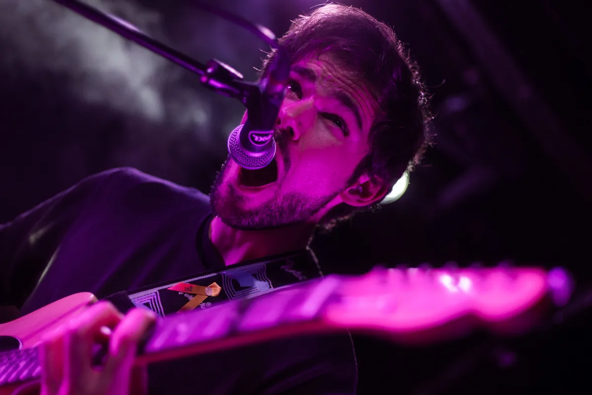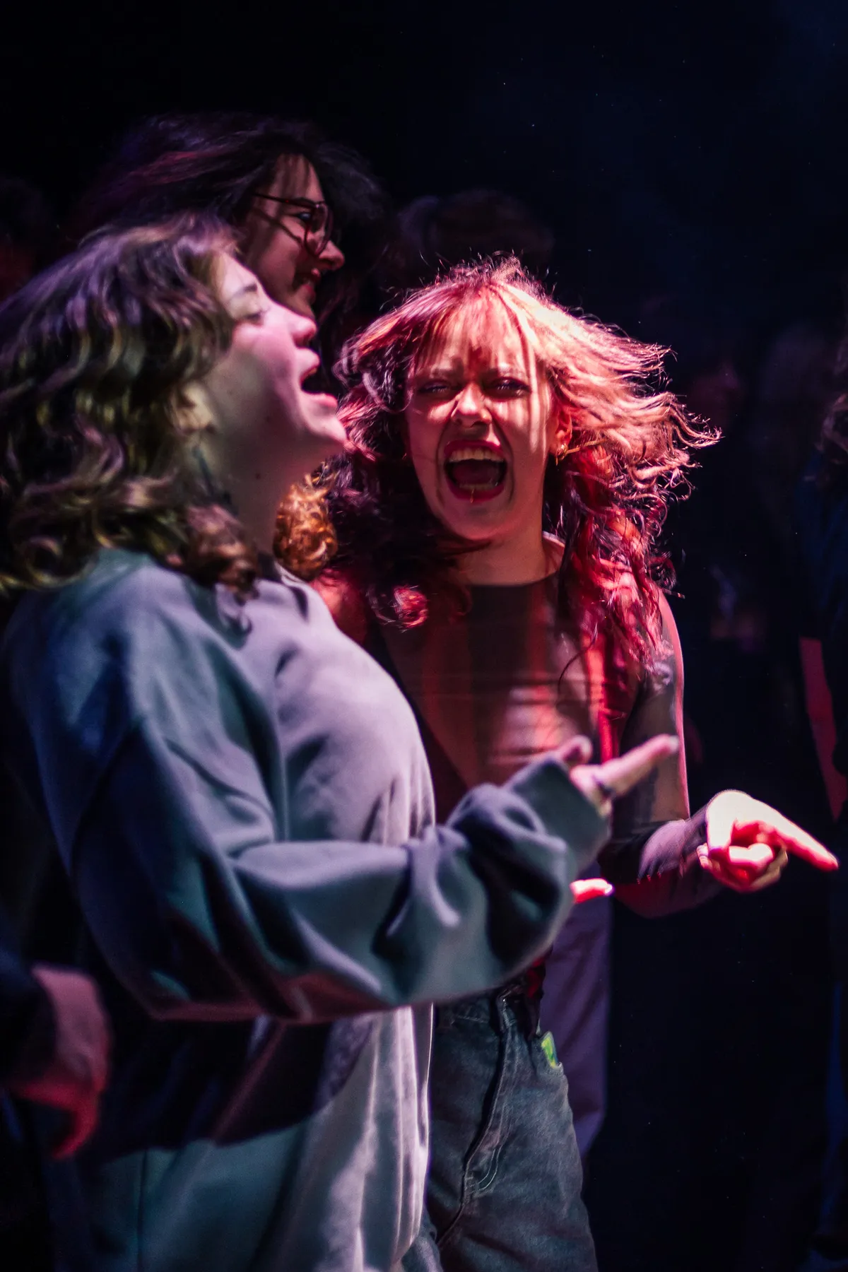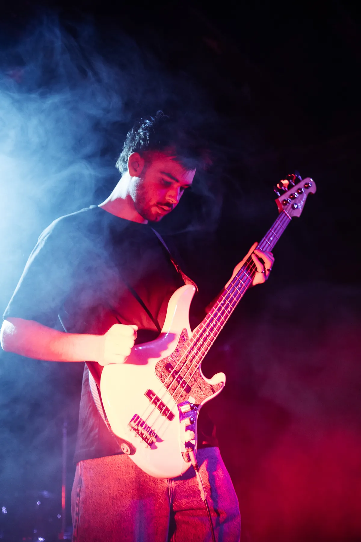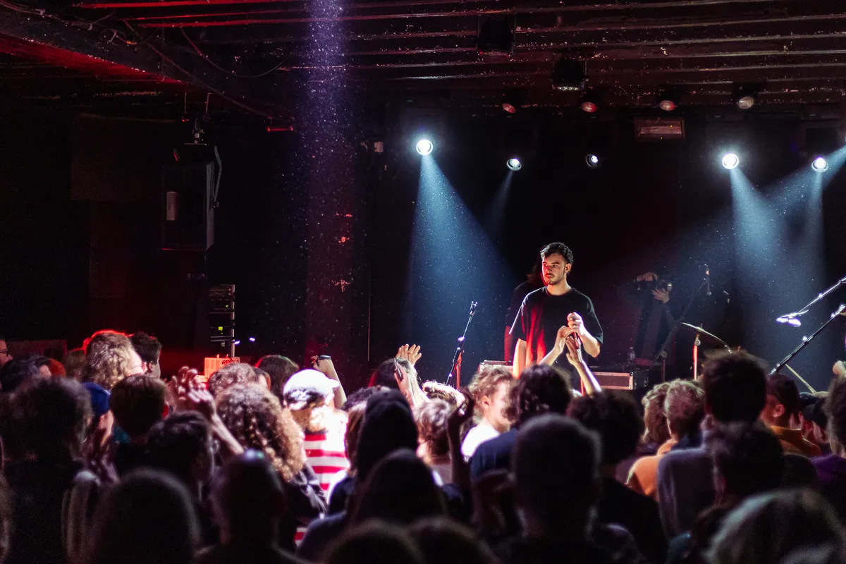 Hoe STEVE klinkt? Denk aan Joey Valence & Brae (oké, of Beastie Boys, als we willen scoren op nostalgie), gemengd met Fat Dog en een scheut Raketkanon. Noise, elektronica en hiphop, zo strak samengebracht dat het aanvoelt als een directe vuistslag van een kooivechter. Stil blijven staan lijkt geen optie. Waarom zou je ook? Nou ja, misschien omdat de temperatuur in de zaal inmiddels tropische hoogten bereikt. Maar dat is voor de voorste rijen geen excuus: shirts, jassen en truien verdwijnen in recordtempo onder het podium. STEVE speelt, de zaal smelt. Bij ‘BURST’ bereiken we het kookpunt: het nummer blijft minutenlang dreigen en grijpt ons dan genadeloos naar de keel. Maar eigenlijk zijn alle nummers bommen. De tracks van de EP worden vooraan al luidkeels meegezongen en bij nog niet uitgebrachte nummers zoals ‘CATCH ME’ zie je het viertal elkaar een blik geven van: “Ah, dus dit werkt óók.” Na een dik halfuur zijn de heren door hun materiaal heen, dat voelt vanzelfsprekend als (veel) te kort, maar doet onze honger naar méér STEVE wel aanwakkeren. Hopelijk tot snel, STEVE.