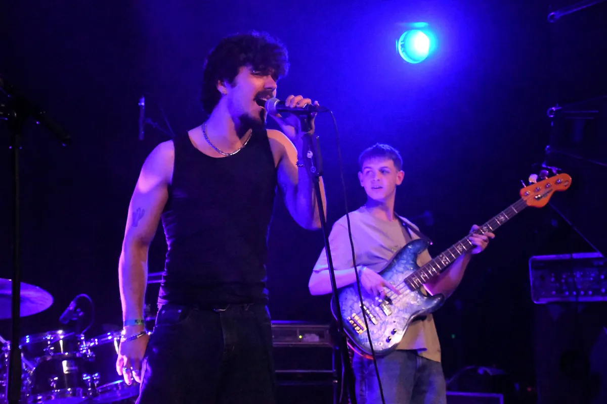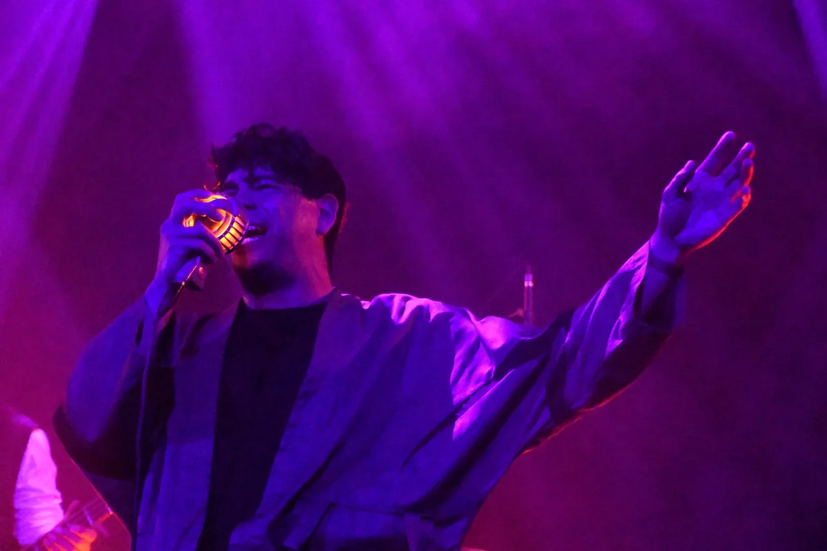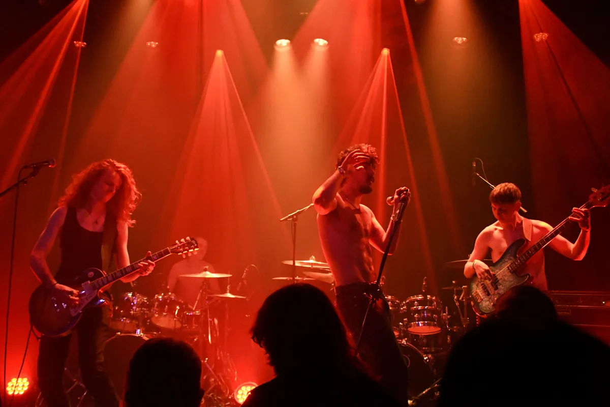 Na Sneurf komt Mountain Eye op het podium. De lange soundcheck belooft veel. Staan de backings van de drums niet te hard, moet de ene gitaar niet wat zachter en de andere wat harder. De band overlegt, het publiek krijgt het allemaal mee. De sfeer is informeel, veel bezoekers kennen elkaar en de bands. Ook deze band komt uit Amsterdam. Ze bestaan sinds 2017, hebben al meerdere tours gedaan en ook al meerdere singles en albums uitgebracht. Dan begint het. Wat een energie. Zanger Arthur Robinson maakt theatrale gebaren, rent en springt op en neer en zweept het publiek op. Een groot deel van de zaal doet mee als hij oproept om te knielen en te jumpen. Na drie kwartier een en al energie is het 22.00 uur. Tijd voor de laatste band: Molokai.