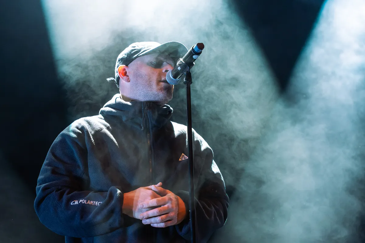 Na een kort dj-intermezzo staat Kubus ineens achter de knoppen. Even later wandelt Sticks haast onopgemerkt het podium op, alsof hij gewoon nog even een biertje gaat halen. Openen doet hij met ‘Gemaakt Om Te Winnen’, een nieuwe track. Ja hoor, er komt dus wéér nieuwe muziek aan, nadat hij de afgelopen drie jaar al doodleuk drie albums dropte. Om het meteen maar even te zeggen: wat deze man doet, is ongekend. Sticks blijft relevant, scherp en hongerig. Hij schudt sterke songs uit zijn mouw alsof hij ze tijdens het ontbijt schrijft. Een van die sterke songs is 'Zonneschijn', van zijn laatste, gelijknamige, album. Vooraan wordt die track meegerapt alsof 'ie tien weken op één in de top 40 heeft gestaan. En dat terwijl Sticks in feite nooit échte hits heeft gehad.