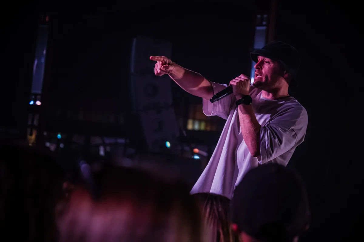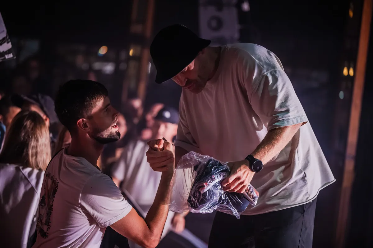 Zie hem daar staan, midden in fucking Heerlen, met een glimlach zo breed als de horizon, terwijl hij ‘Dit Is Leven!’ brengt. Sticks geniet zichtbaar van de jonge garde vooraan, die zijn lyrics moeiteloos meerapt. En het zijn niet alleen de jongeren die elk woord kunnen dromen: ook de (iets) oudere rotten staan vooraan, elke zin soepel over de lippen rollend, alsof de tijd heeft stilgestaan sinds de eerste Opgezwolle-tijden. En terwijl de jongere garde ‘Gerrit’ omarmt alsof het hét anthem van hun jeugd was - terwijl ze destijds nog aan de Olvarit zaten - spit de oudere garde moeiteloos ‘Dag tot Dag’ mee, een track die jonger is dan hun eigen kroost. Om maar aan te geven dat Sticks voor iedereen is, van jong tot oud en van hiphopliefhebber tot iemand die net uit een voorstelling van het naastgelegen theater komt rollen.