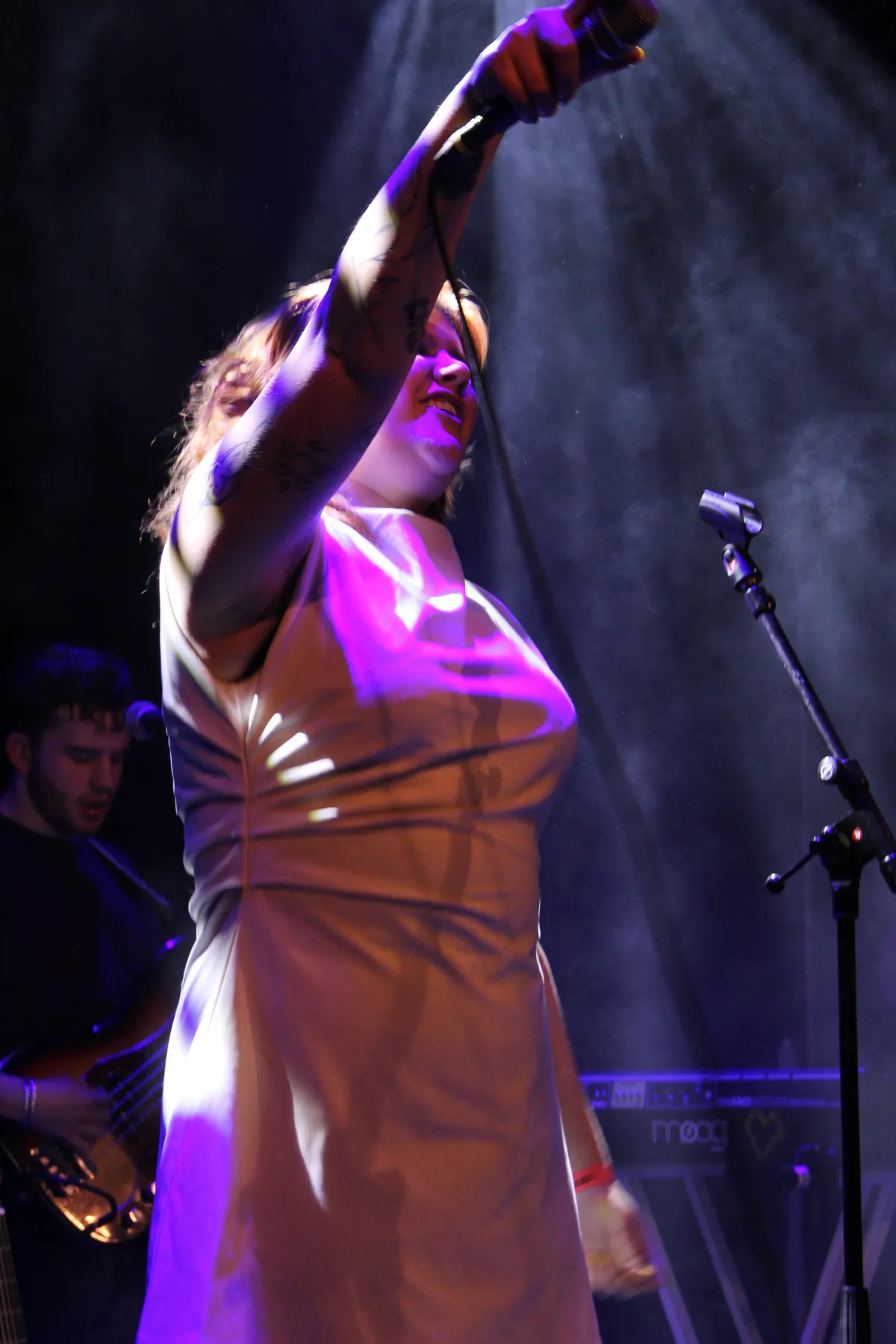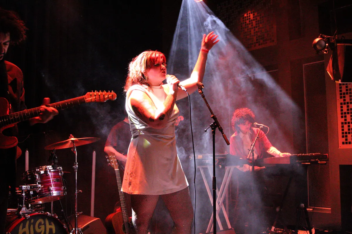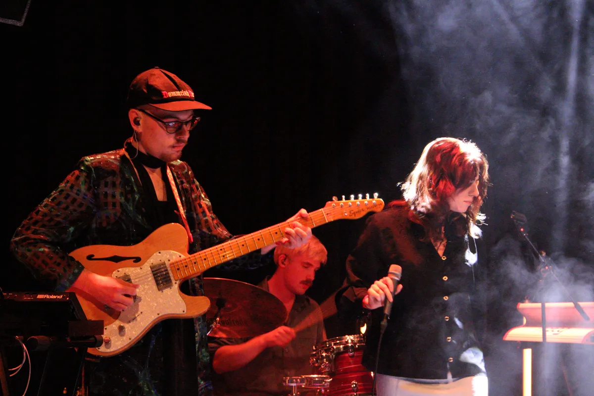 De dynamiek die Bad Luck Baby in hun optreden hebben getopt, gaat onverminderd door als High On Chai aantreedt. De powerpop waar High On Chai vindt nu dan eindelijk de uitweg bij een officiële releaseshow. Het is geen onbekend terrein want eerder heeft de band rondom Cheyenne Howell in de kleine zaal gestaan en ook in de grote zaal waar op datzelfde moment poplegende Kim Wilde speelt voor een uitverkochte zaal. Met dezelfde dynamiek als de bekende buurvrouw in de grote zaal, vangt High On Chai het optreden aan. Ze laten er geen gras over groeien met Carefully Good, gevolgd door het titelnummer van de EP Counterweight. Tijdens de avond speelt Cheyenne een aantal malen op de akoestische gitaar mee (zie foto hieronder).