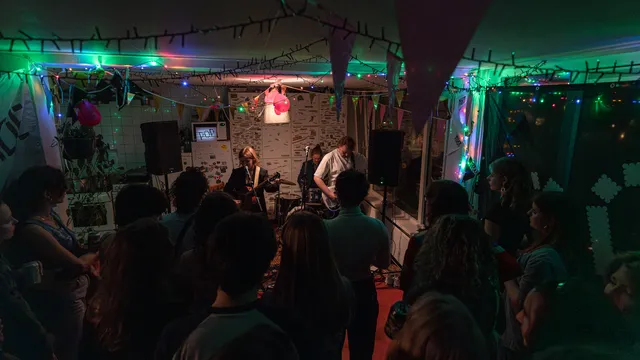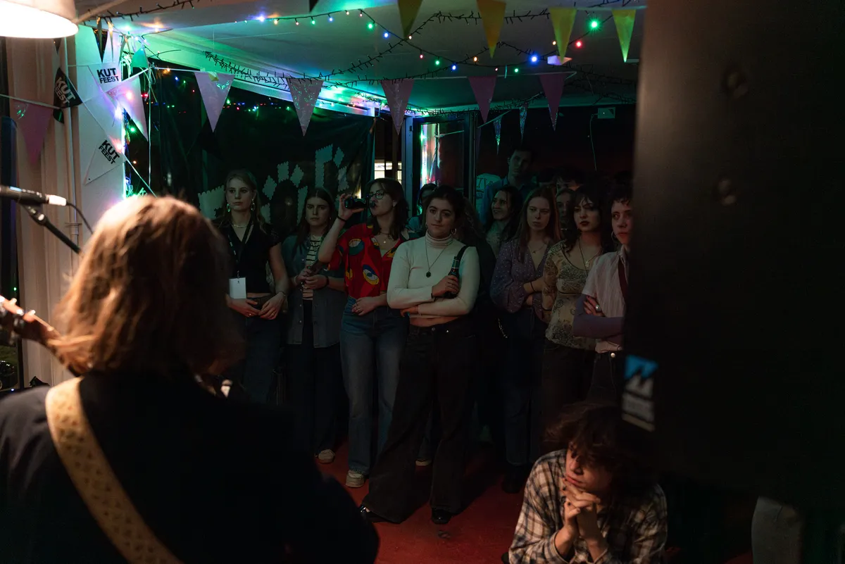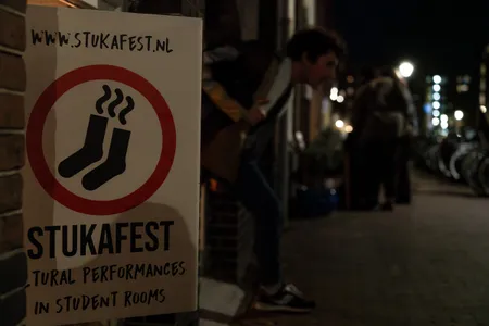 Een aan-de-straat-grenzend-keukenraam als ingang, koelkasten achter het podium en een gang gevuld met stoelen. Utrechtse studentenhuizen werden voor één avond omgetoverd tot een heus podium voor artiesten en kunstenaars tijdens het jaarlijkse Stukafest. De geïmproviseerde podia verspreidden zich over de hele stad, met als enige voorwaarde: maximaal tien minuten fietsen vanaf de Domtoren. We nemen je mee naar twee compleet verschillende muziekacts: indiefolkband ALOYSE en punkband ALABASTER.
