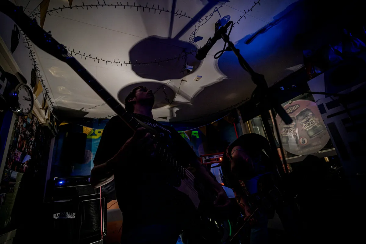 De bandleden van ALOYSE werken nog snel een bordje curry weg, gemaakt in de keuken naast het podium. De aanloop naar hun show begint stressvol voor drummer Daan Krijger. “We hebben veel uit moeten zoeken, omdat het allemaal leenspullen zijn. Alles ging op rolletjes en niets kon meer misgaan, dacht ik. Tot ik een uur op voorhand besefte dat ik mijn eigen snare en cymbals was vergeten en die zijn vrij cruciaal voor onze sound.” Via via konden ze de ontbrekende spullen lenen, waardoor ze (na flink haasten) vlak voor aanvang van de eerste show toch een complete setup hadden. “Het was een kleine hartverzakking, dat bleef nog even nasudderen”, lacht Krijger, opgelucht dat het toch goed afliep.