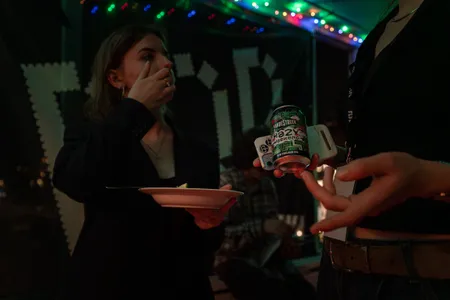 Langzaam maar zeker begint het IBB-huis zich te vullen met publiek. De Tame Impala-achtergrondmuziek wordt nu overstemd door geroezemoes, terwijl de bandleden hun plek innemen op het podium. Dan begint leadzangeres Bernice Aloyse Pisters te zingen. Haar stem wordt tijdens het eerste nummer ondersteund door basgitaar en vanaf het tweede nummer zet de drummer ook in. De muziek heeft een fijne sound. Het voelt gemoedelijk, wat perfect past bij de warmbelichte woonkamer. Met haar teksten daagt ze het publiek uit om na te denken over de complexiteit van dit menselijke leven. Zo kondigt Pister één van de nummers aan met: “Dit lied gaat over het feit dat we allemaal de rit van het leven meemaken, maar we in andere auto’s zitten door de keuzes van onze ouders.”