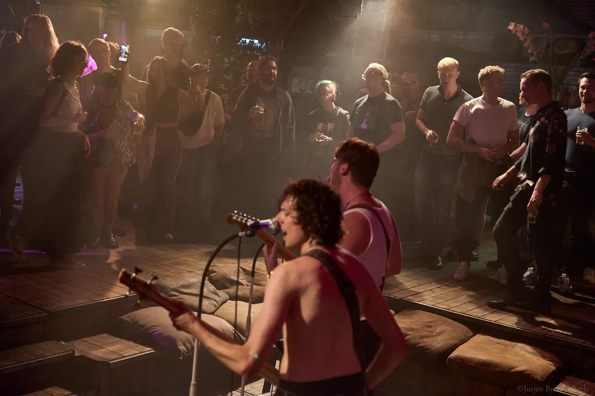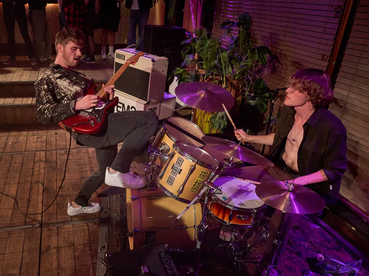 Wie zich ook laat inspireren door punk-, grunge- en rock&rollpioniers zijn de leden van PULSE. Het moet voelen als vroeger, als ‘echte’ rock en roll zoals die van de Rolling Stones, Herman Brood en - jawel - Nirvana. Tijdens de opbouw van een andere set beraamd zanger Daan Pols samen met bassist Chris Lammers een plannetje: “Bij Sommelier gooien we de hele bende aan de kant en doen we een moshpit”. De bende is nog veel te tam, vinden ze. Het lijkt wel een transformatie. Zodra de blonde zanger de kuil instapt en zijn grunge persona aanneemt, is hij zowaar een ander mens. Met een aangename schorheid, gespannen spieren en bakken energie werkt hij zich door hun set. Al spelen de heren nog maar anderhalf jaar samen, is er onderling een leuke, broederlijke dynamiek te merken.