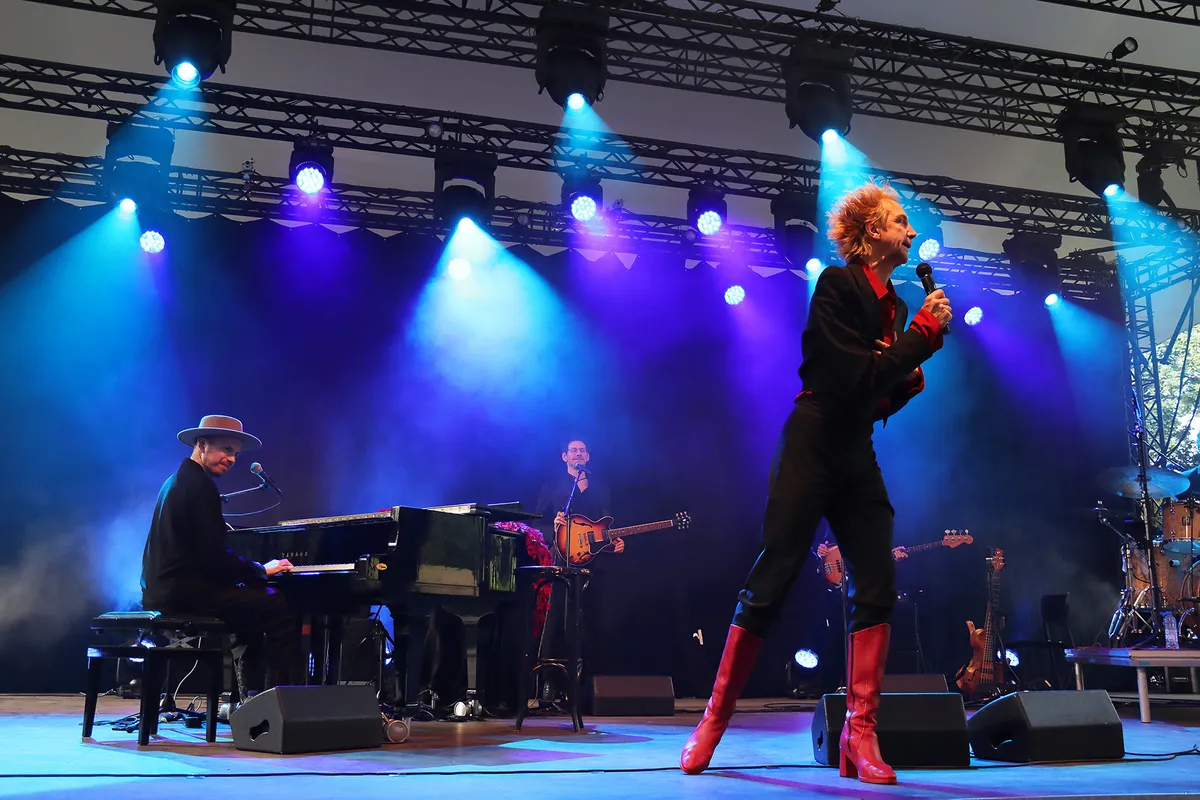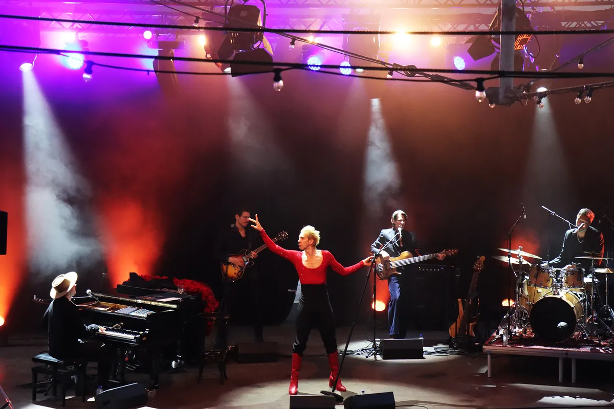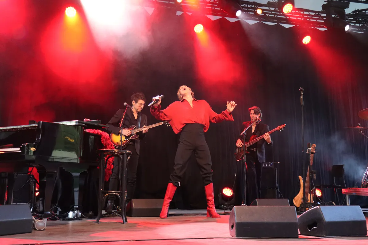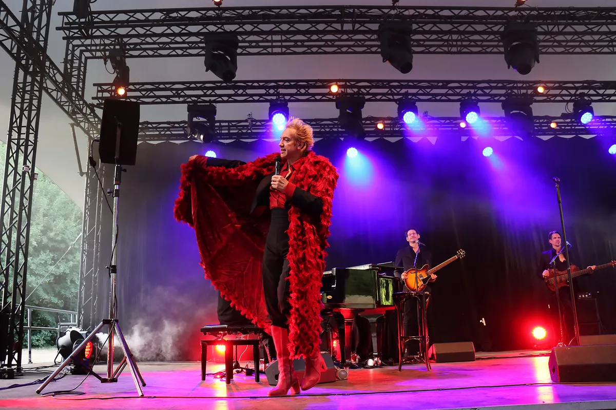 ‘We Could Be Heroes’ is het derde deel van de internationaal vermaarde Bowie-trilogie van de Nijmeegse zanger en performer Sven Ratzke. Na het explosieve ‘Starman’ en het intieme ‘Where Are We Now’ klinkt in dit derde deel een liefdevol eerbetoon en een krachtige oproep in de geest van David Bowie. Tegen het einde van de show biedt Ratzke zijn excuses aan. “Er zitten misschien mensen in het publiek die een avondje Bowie-covers hadden verwacht en die nu zijn teleurgesteld maar nee, ik doe geen tribute”, aldus de zanger. Het is een van de vele ironische sprongen die hij maakt en het wordt hem natuurlijk vergeven want intussen heeft hij wel gezorgd voor een onvergetelijke avond muzikaal theater van de bovenste plank. Een volgepakt Openluchttheater op woensdag 9 juli, een ras-entertainer en een enthousiast publiek dat na afloop ook gretig gebruik maakt van de mogelijkheid om Ratzke even persoonlijk te spreken of een van zijn albums mee naar huis te nemen. Een avond om niet snel te vergeten.