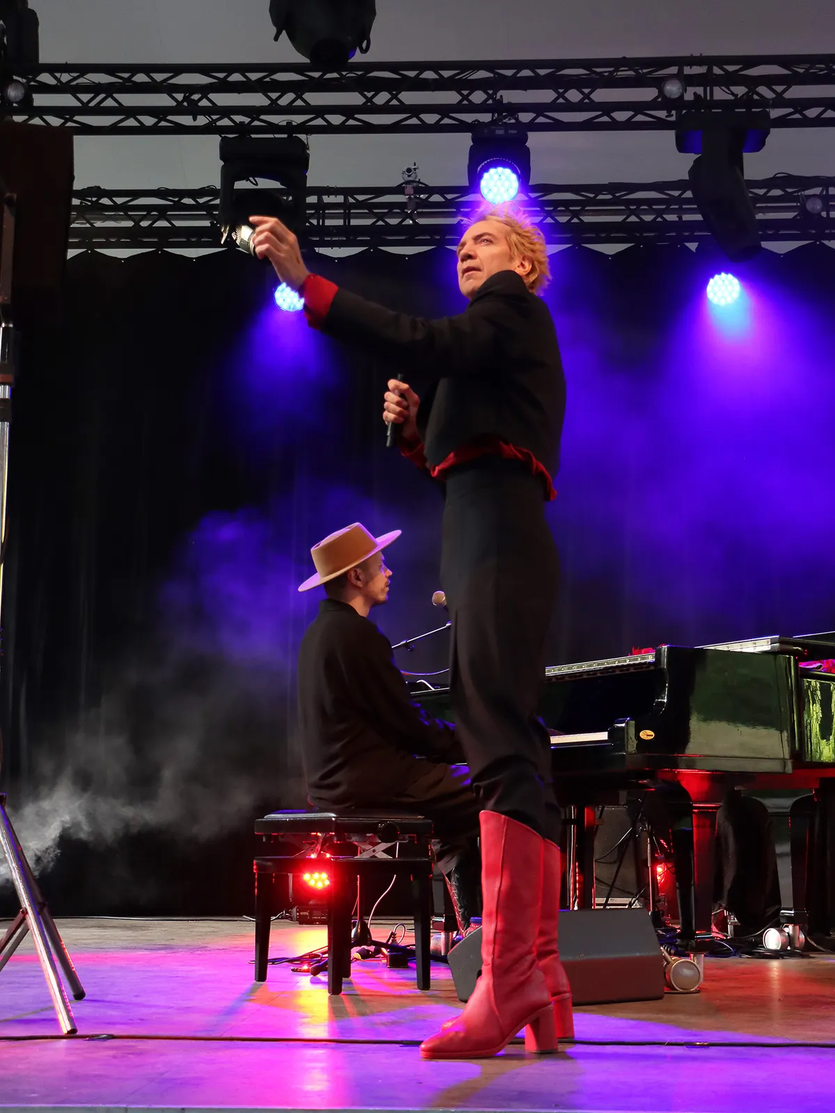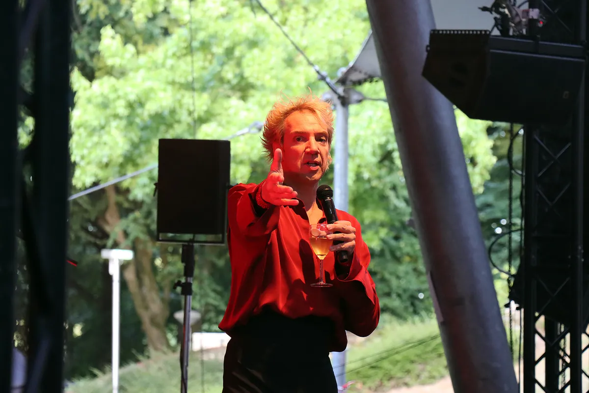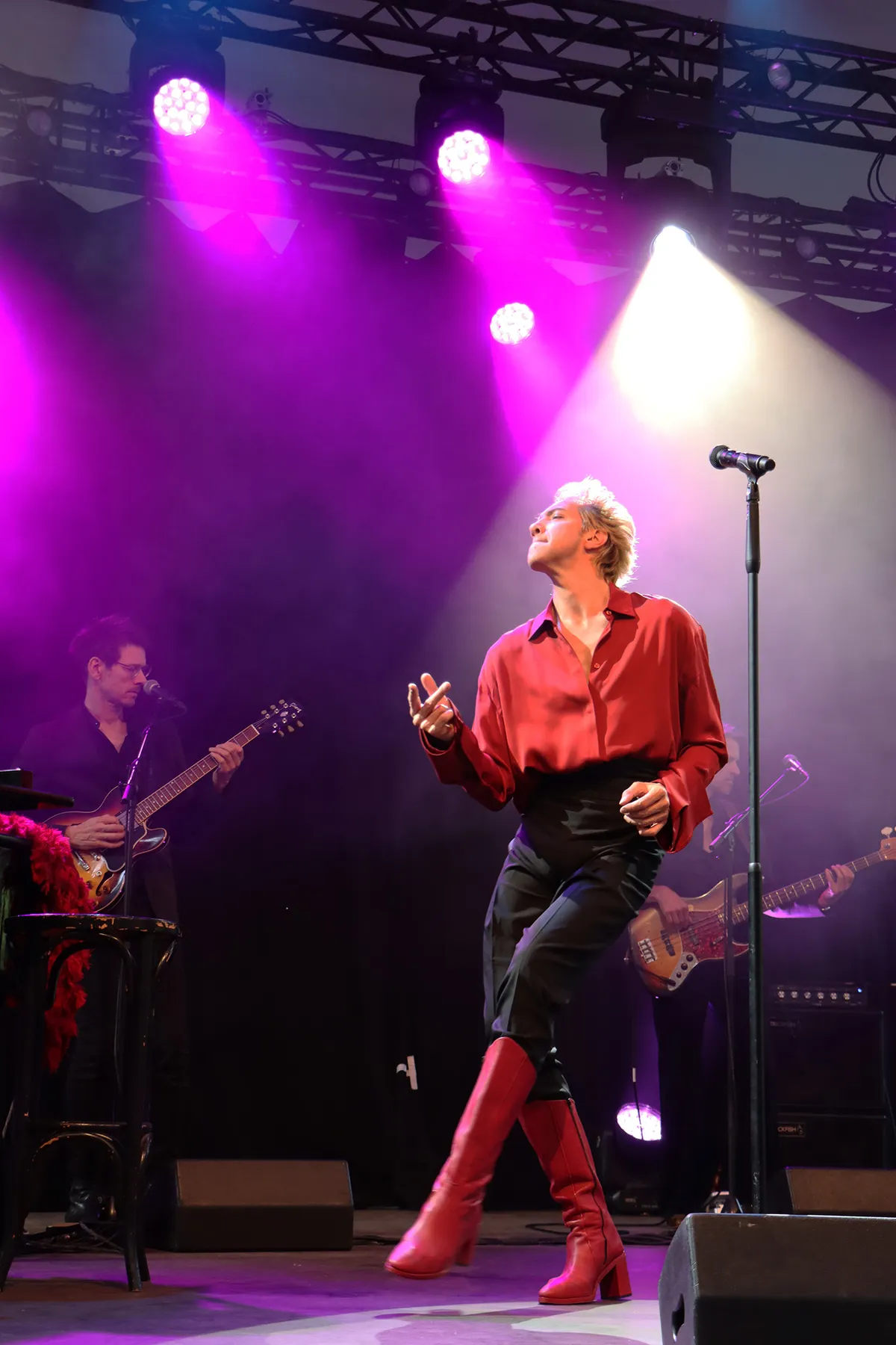 ‘We Could Be Heroes’ is het derde deel van de internationaal vermaarde Bowie-trilogie van de Nijmeegse zanger en performer Sven Ratzke. Na het explosieve ‘Starman’ en het intieme ‘Where Are We Now’ klinkt in dit derde deel een liefdevol eerbetoon en een krachtige oproep in de geest van David Bowie. Tegen het einde van de show biedt Ratzke zijn excuses aan. “Er zitten misschien mensen in het publiek die een avondje Bowie-covers hadden verwacht en die nu zijn teleurgesteld maar nee, ik doe geen tribute”, aldus de zanger. Het is een van de vele ironische sprongen die hij maakt en het wordt hem natuurlijk vergeven want intussen heeft hij wel gezorgd voor een onvergetelijke avond muzikaal theater van de bovenste plank. Een volgepakt Openluchttheater op woensdag 9 juli, een ras-entertainer en een enthousiast publiek dat na afloop ook gretig gebruik maakt van de mogelijkheid om Ratzke even persoonlijk te spreken of een van zijn albums mee naar huis te nemen. Een avond om niet snel te vergeten.