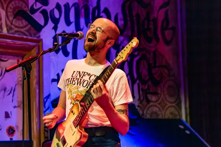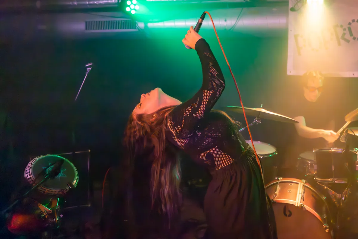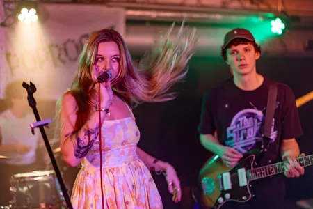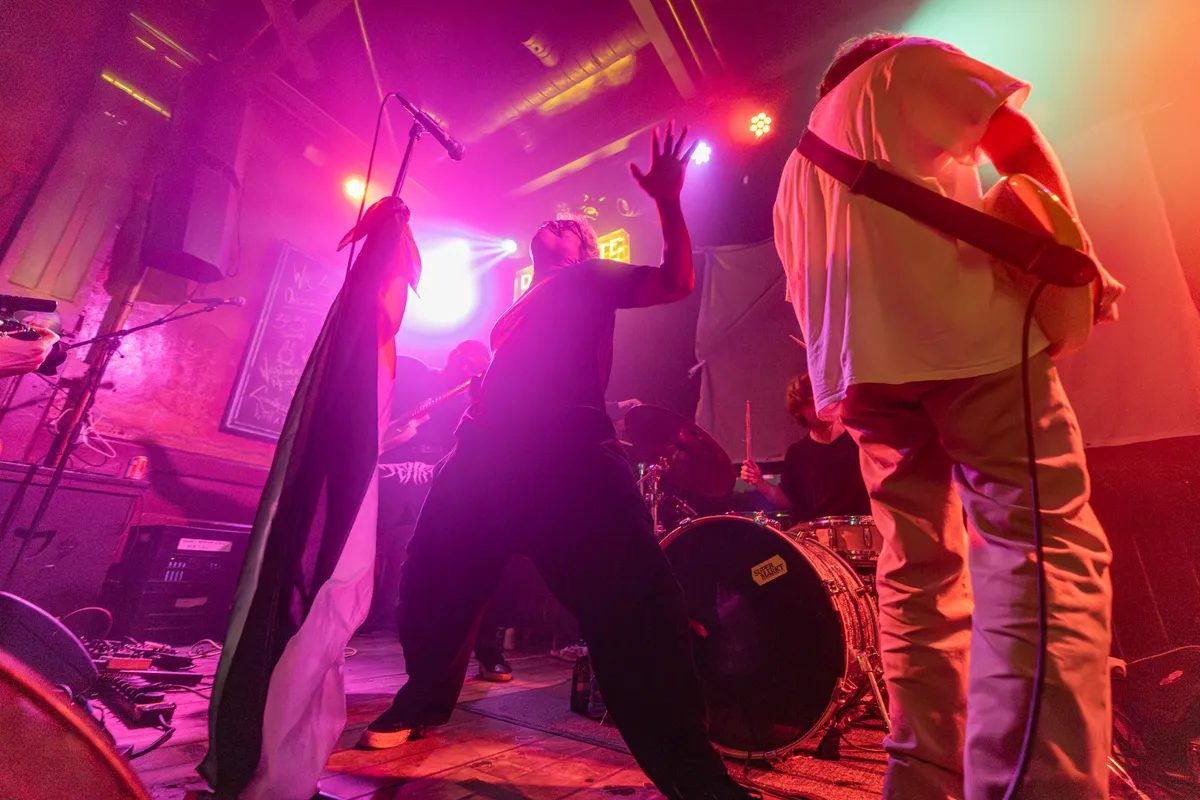 Onze Popronde-avond begint in The Social Hub, waar de mannen van shoom knus samengepakt op het podium staan. De vergelijking tussen deze vijfkoppige band en Black Country, New Road is snel gemaakt, gezien de hoekige, jazzy gitaarherrie boordevol tempowisselingen en gekke maatsoorten die de Groningers laten horen. Wat daarnaast ook snel duidelijk is: shoom is een band van uitersten. Het ene moment klinkt er slechts een voorzichtig gitaartje om de spanning op te bouwen, een seconde later hebben bas, gitaar, drums en sax elkaar gevonden om één knallend geheel te vormen. Op die momenten, als alles bij elkaar komt, is shoom op z’n best. Dan zit de muziek vol met actie en drama, en klinkt het bij vlagen zelfs filmisch. De stille, rustige stukjes van de nummers komen vanavond niet helemaal tot hun recht, en worden soms ook niet subtiel genoeg gespeeld. Af en toe klinkt de band ook wat onsamenhangend, alsof ze elkaar een beetje kwijtraken binnen het ontelbare aantal tempo’s en maatsoorten. Toch bouwen de jongens elk nummer op richting een denderende climax waarbij hun strakke techniek, solide samenspel en verfijnde muzikaliteit overheersen.