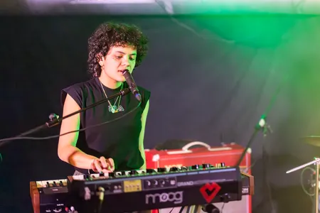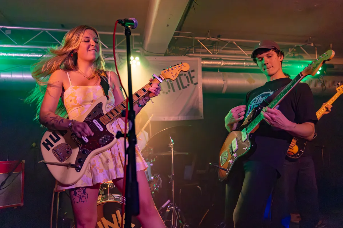 “We hebben best wel veel optredens gedaan, maar dat ik dan hier sta, en dat mensen voor je klappen… dat is gewoon leuk!” Die opmerking toont aan waar het aan schort bij HUNK, een geweldige band met leden die bijna te jong lijken om zulke goede schurende boze rock te maken. HUNK is een band die oprecht de vibe van bands als Garbage, Nirvana en Smashing Pumpkins van de jaren negentig midden in het nu zet. We kunnen alles wel postpunk gaan noemen, maar daar doe je deze band mee tekort. Als muzikanten zitten ze er vol in, als zangeres ook. Het sleept zich vooruit ondanks een pompende drum, want de gitaar is gruizig met reverb. Toetsen vullen de muzikale gaten die ontstaan in het gevecht tussen die twee. In een kort gesprekje, bij toeval, komen we erachter dat de band die toegedicht wordt aan Haarlem, een zangeres kent die uit Den Haag komt. Een leuke verrassing. Wat ons ook verbaast, is hoe goed en geaard ze live klinken. We hadden via social media al wel eens wat van de band gehoord, en daar klonk het allemaal iets te… tsja… leuk? Zoals die opmerking over hoe leuk het is; het doet een beetje teniet aan wat ze muzikaal gezien neerzetten. Niet zo bang zijn om niet leuk te zijn. Je nummers waren niet geschreven omdat je leuk was maar omdat je boos of verdrietig was (aldus de zangeres). Keep the vibe alive!