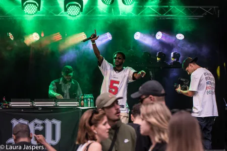 PEP knalt kort, net zoals eh... pep. Nog nooit zo vroeg op de dag naar pep gezocht. Waar is PEP? Komt PEP wel? Eerder bleek er een programmawisseling te zijn, wie om 17.15 uur voor Pepijn Houben (PEP's echte naam) kwam, stond ineens bij Grote Geelstaart. En wie later een tweede poging waagt, staat ineens bij Houben z'n dj en mc te wachten terwijl de act al een kwartier bezig moest zijn. Is het stereotype waar: is een rapper weer eens niet op komen dagen? Hij is er gewoon, die gozer stond te socializen met vrienden en enthousiastelingen in het publiek. Enfin. Muziek. Het gaat wel hard, hoor. Bass om je trommelvliezen te laten klapperen en teksten die van straat komen. PEP heeft zijn maten CB, Caspar Benjamin, en Banda van rapformatie VEILINGKADE meegenomen om nog een aantal songs samen op te voeren. Na 20 minuten (het échte optreden) is het klaar. Met slechts een aantal singles en één EP is de Future stage eigenlijk nog te groot, maar aan zijn aanhang ligt het niet. (ML)