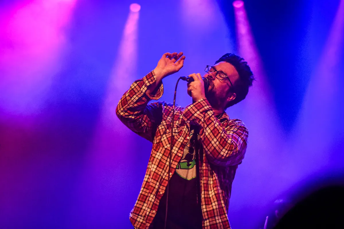 Enerverend is de show zeker wel. Na ongeveer 25 minuten gaat ergens in het gebouw een brandalarm af, waardoor de zaal wordt verlicht door een flinke dosis TL-verlichting. De band speelt eerst nog even vertwijfeld door maar besluit dan toch maar even te stoppen om te vragen wat er hand is. Gelukkig niks, en kan na een paar minuten de show weer door nadat er een paar goed flauwe moppen zijn getapt. Maar we zijn nog geen 30 minuten verder wanneer de gitarist een snelle instrumentwissel moet doen. Waarom? Een afgebroken brug en kop, moeilijk spelen zonder snaren natuurlijk. ‘That song is actually not about beheading guitars’.