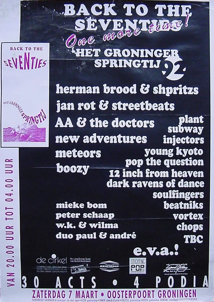 Het zal dan ook geen verrassing zijn dat veel jongeren hierdoor begonnen aan een muzikale carrière in de levendige scene van Groningen. Sommigen kwamen er zelfs speciaal voor naar Stad. Een van die avonturiers kennen we wellicht wel. Hij profiteerde enorm van het Groninger Springtij, en gebruikte het als springplank; Herman Brood was zijn naam.