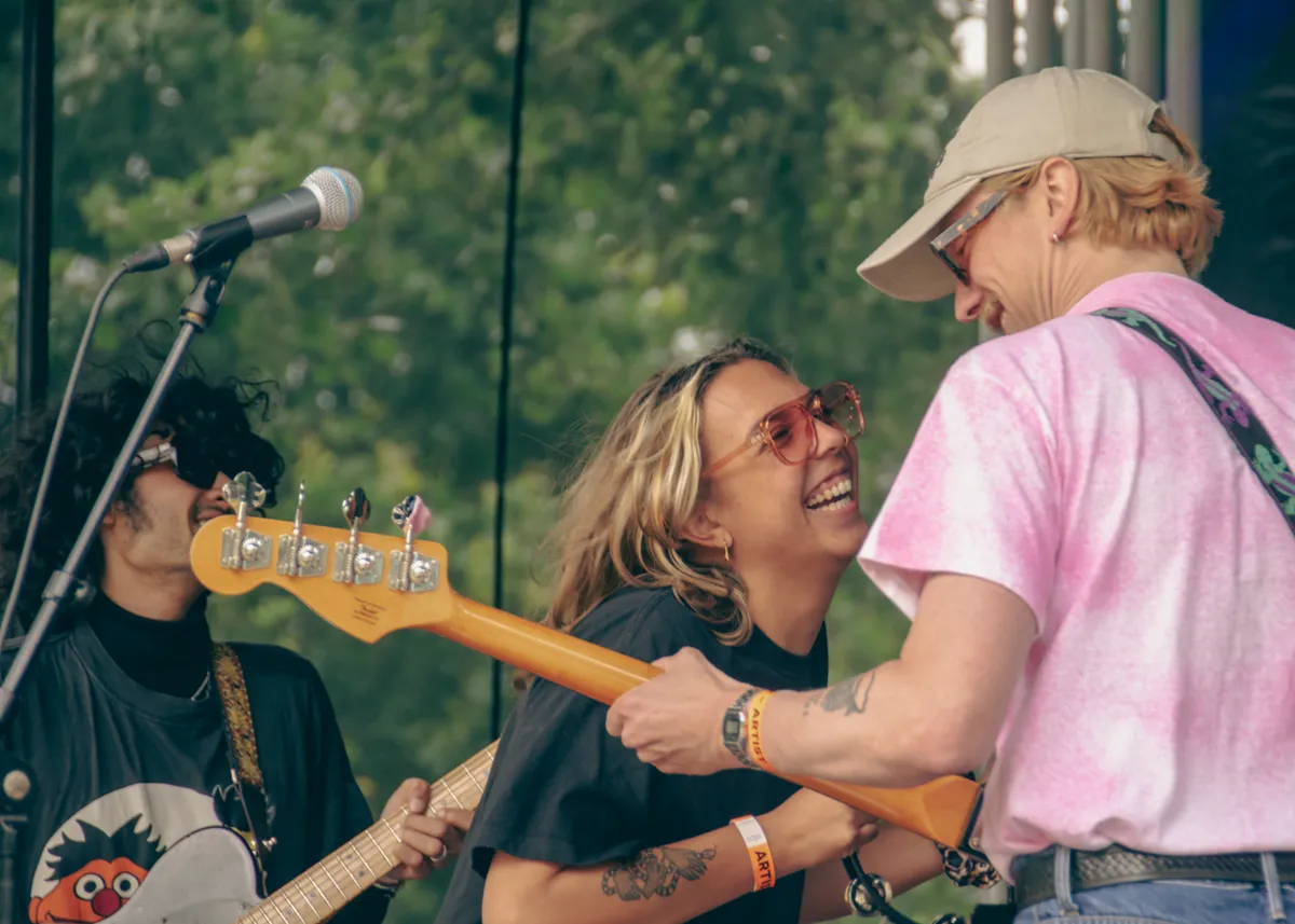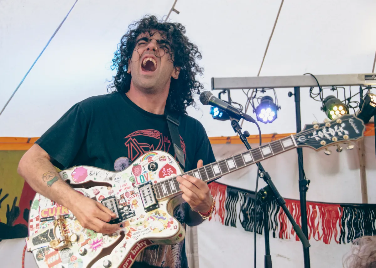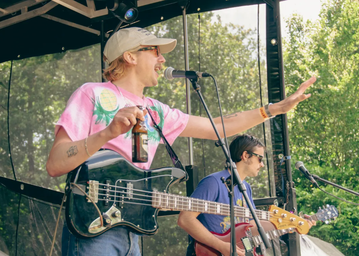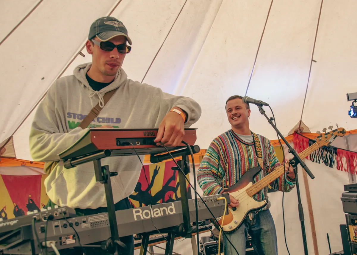 1,2,3,4… Groove mee met Parker Fans. Kick (zang) en Sem (gitaar) hebben hun derde bandlid Thomas (toetsen) vanmiddag opgehaald van Down The Rabbit Hole. Hij is hier aanwezig, inclusief kater, die wordt verborgen door een zwarte zonnebril. Verder niks van te merken, want Parker Fans speelt nonchalant hun feestelijke indie-boogie dat synth-elementen van de jaren tachtig bevat. ,,Wat vet dit, echt vet gaaf”, zegt Kick, met een vleugje ironie. Parker Fans laat de keuze om mee te swingen niet aan het publiek over, met gemak bieden de drie de tent wat elektronische dansbare tunes.