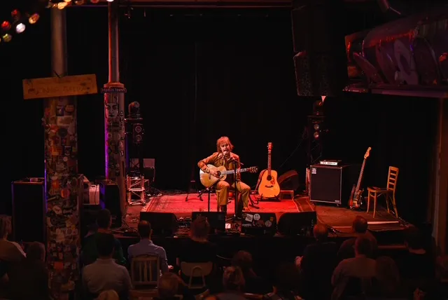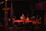 Met een zondagmiddag als deze en in één zijn eentje, is het voor Pablo van de Poel in eerste instantie onwennig. Tijdens de introductie wil Pablo zelfs al het gesprek van Sam overnemen, maar de gastvrouw weet heel charmant de inleiding weer en initiatief naar zich terug te halen. Natuurlijk weten veel mensen dat Pablo met onder meer zijn broer Luka de illustere band DeWollf vormt, maar er zijn ook mensen in Slachthuis Haarlem die dat niet weten. Nadat hij er even inkomt, voelt Pablo zich steeds meer op zijn gemak en de ontspannen reacties van het publiek doet de rest. Met een paar eigen nummers en vooral een aantal nummers van zijn voorbeelden als Bozz Scaggs en Townes Van Zandt, weet Pablo het publiek om zijn vingers te winden.