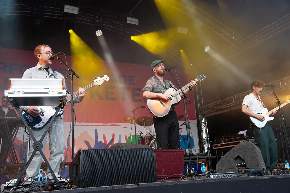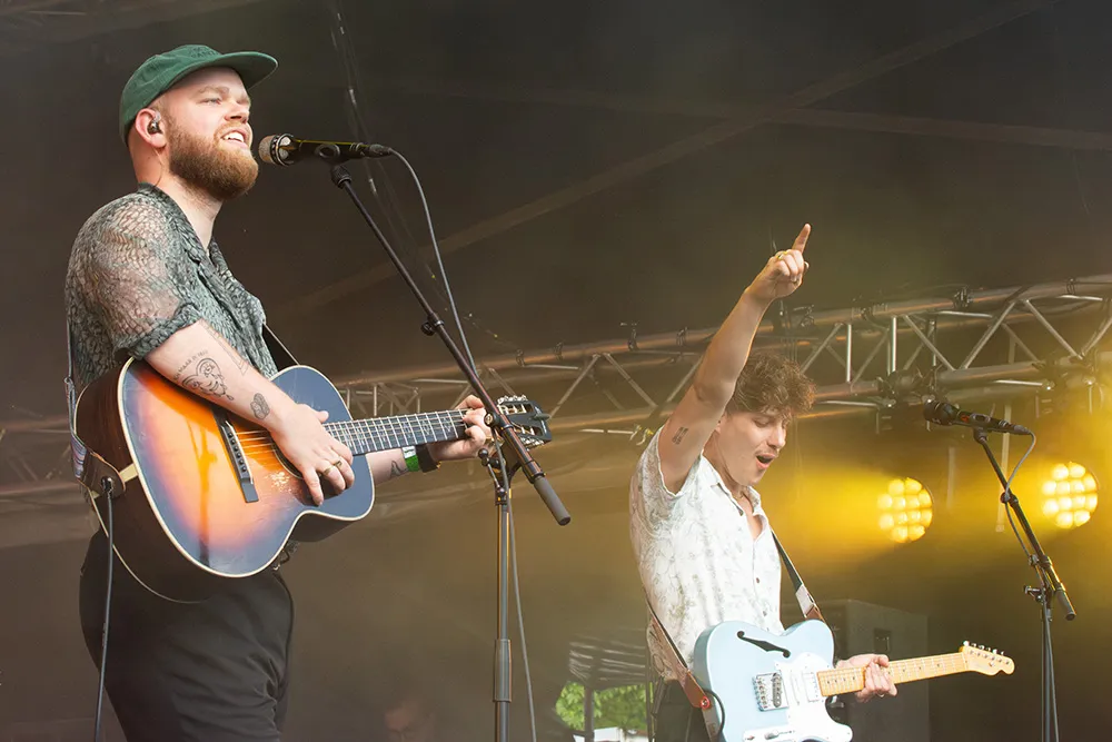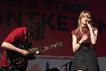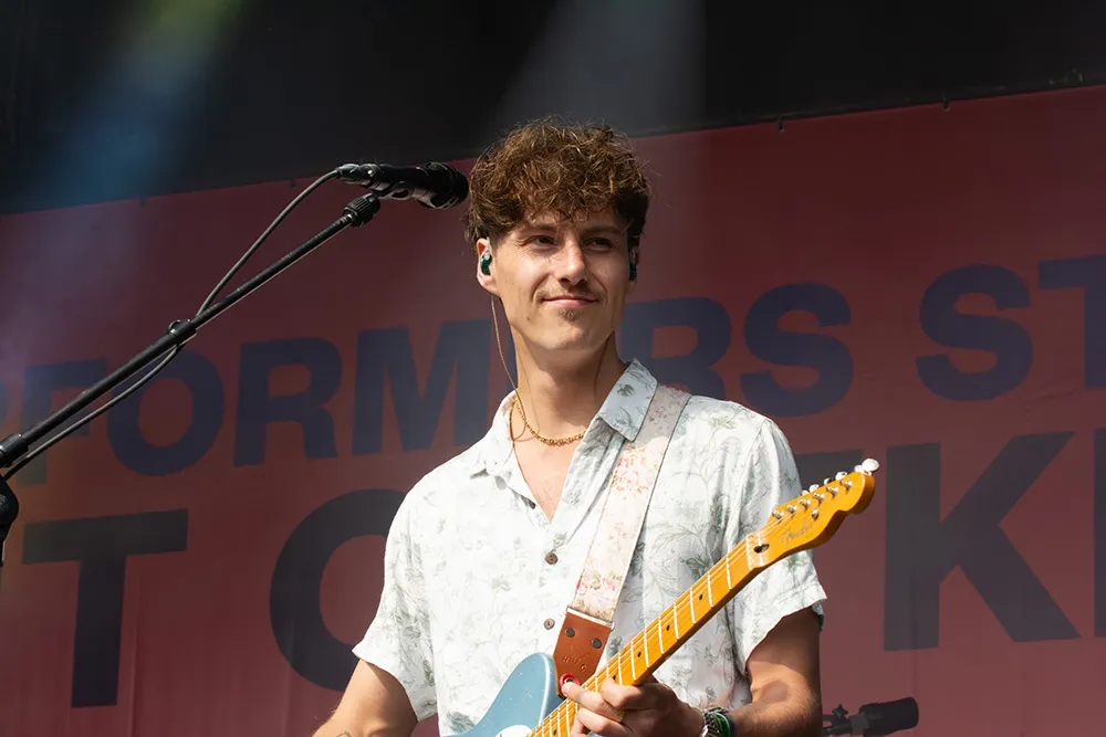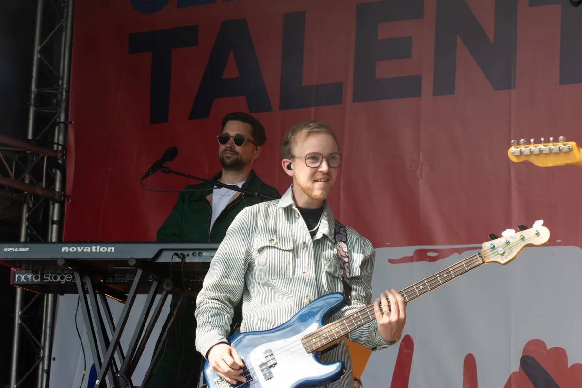 Voor wie er niet meer bij heeft kunnen komen, heeft gebruik kunnen maken van de livestream die Haarlem 105 heeft verzorgd, om niets van het festival te hoeven missen. De bands en artiesten hebben al het andere voor hun rekening genomen. Meest interessante is uiteraard het optreden van Waterfront. Zij beginnen op het hoofdpodium van Bevrijdingspop, omdat zij de winnaars zijn van de Rob Acda Award. Traditiegetrouw mag de winnende band of act dan op het hoofdpodium beginnen. Voor Waterfront zijn het twintig waanzinnige minuten. Naast blikvanger Cedie Kolf bestaat de band uit gitaristen Tim van der Lans (zie foto) en Cheyenne Howell (red. High On Chai zie foto), Jildau Klaasen, drummer Mischa de Haan en bassist Siem Bockweg.