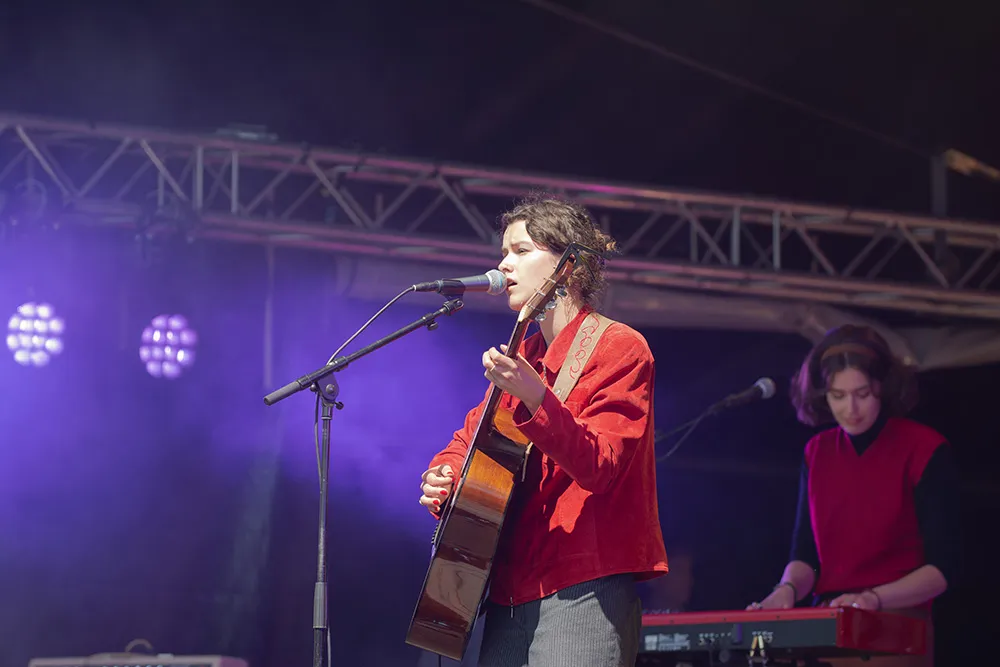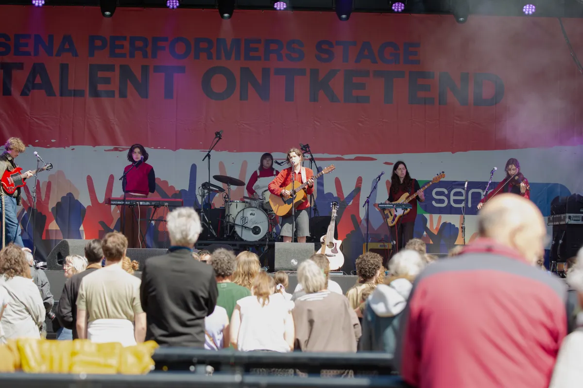 Even verderop begint op het Sena Performance podium Coos aan haar optreden en de kersverse geselecteerde voor de Popronde laat horen dat ze die niet zo maar heeft gekregen. Op het podium vertelt Coos hoe zij tegen Bevrijdingsdag aankijkt. ,,Fijn dat jullie dat met ons willen doen”, zegt Coos die met haar zeskoppige band (inclusief haarzelf) het optreden verzorgt. Het vioolspel van Eline Heemskerk valt daarbij op, terwijl diezelfde Eline Heemskerk eerder nog te zien en te horen is geweest tijdens de halve finale van Mooie Noten. Ook daar is Coos te zien en te horen geweest. Ook hier geeft Coos al een inkijk op haar naderende EP die in juni gaat uitkomen en waar ze ook haar eerdere werk laat horen.
