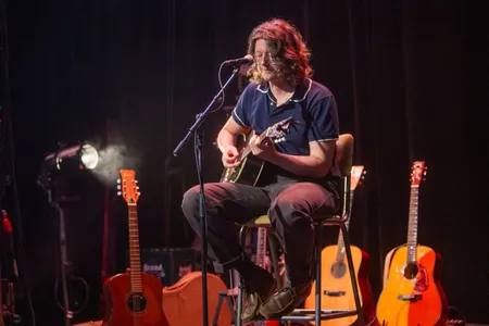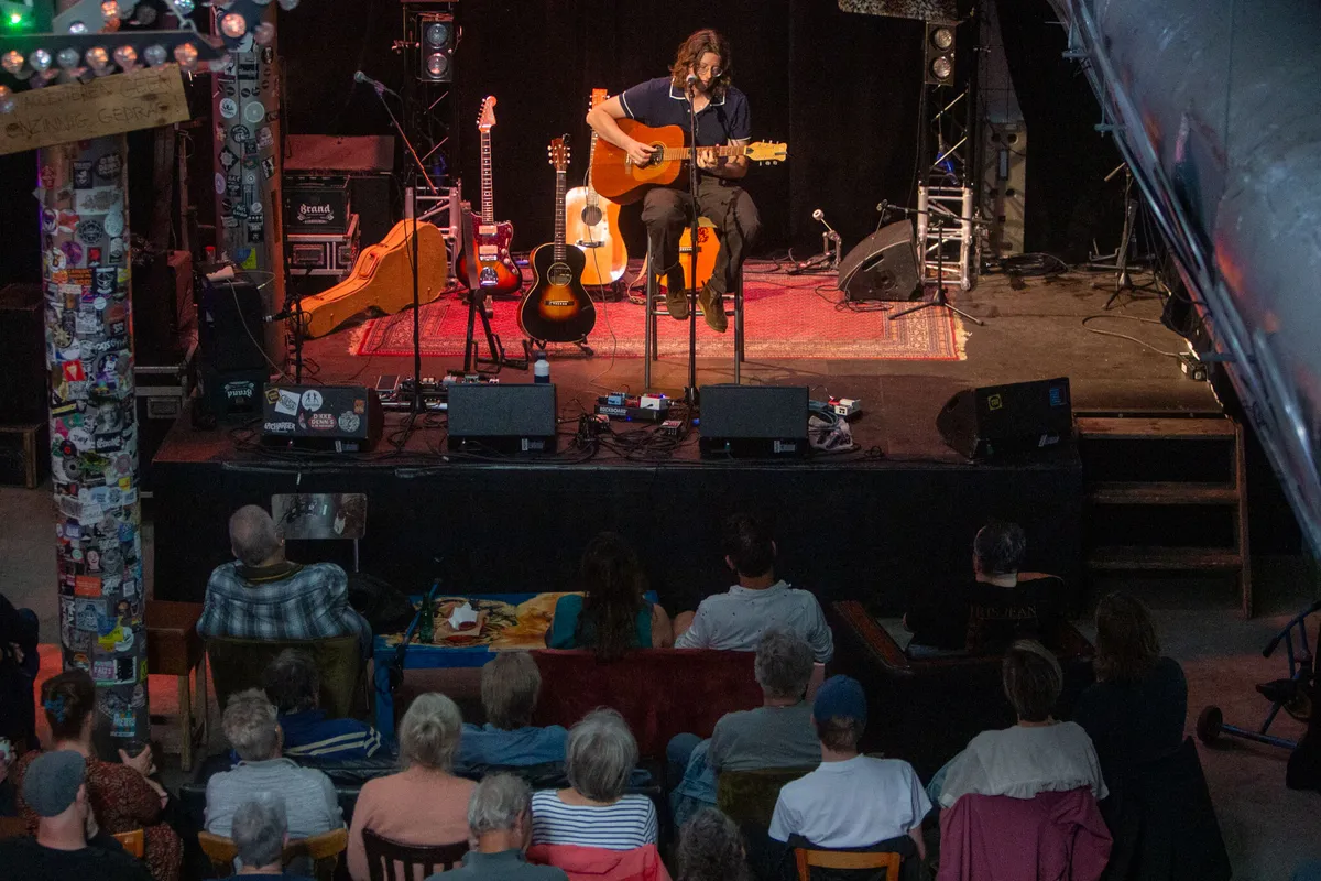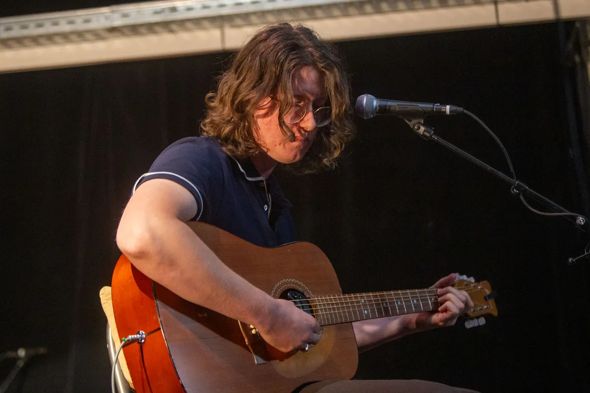 Losse Jos heeft inmiddels twee albums achter zijn naam staan. Na de introductie door Sam met het bijbehorende vraag gesprek, speelt Losse Jos zijn werk met zijn liedjes die de nodige hilariteit bij Het publiek weet op te wekken. Dat zit vooral in de spitsvondigheid die al een rode draad door zijn liedjes zitten. Overeenstemmingswisselingen is daar het voorbeeld van. De reden waarom Losse Jos nauwelijks wat zegt tussen de liedjes door, heeft weer met iets anders te maken. ,,We hebben net al gesproken over mij, dus dat hoeft niet meer”, zegt hij gortdroog. Er zijn vaak momenten dat wanneer je Losse Jos hoort, het beeld van Simon Carmiggelt min of meer ziet. Peinzend en de teksten die Losse Jos ook gebruikt in zijn liedjes zijn ook kronkels. Alleen wel de zijne. Dat maakt Losse Jos ook weer uniek.