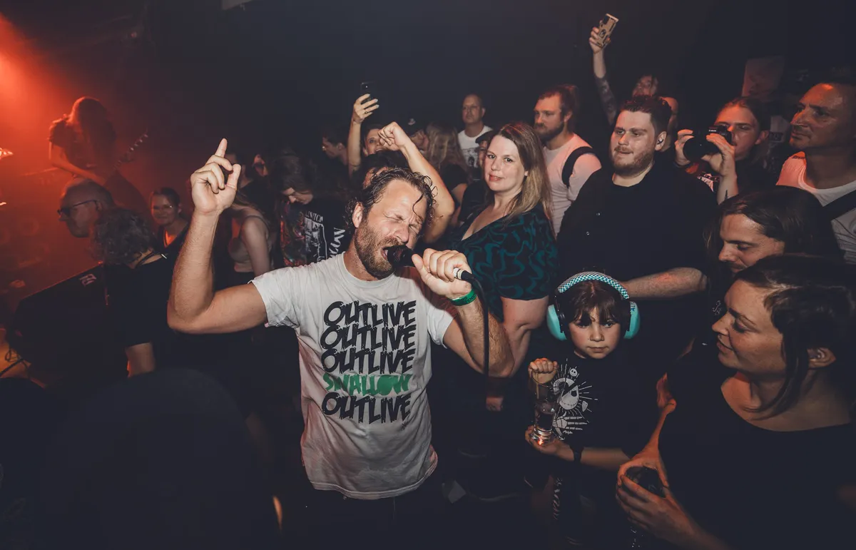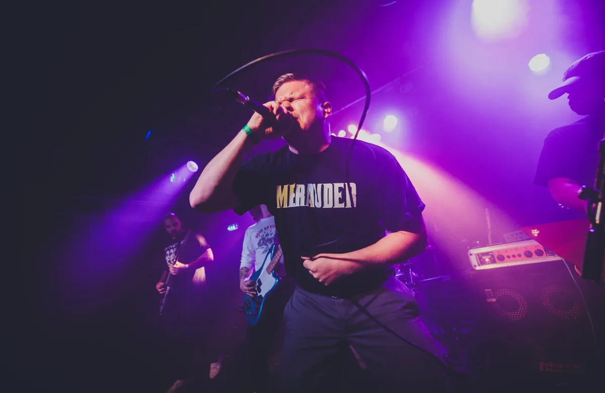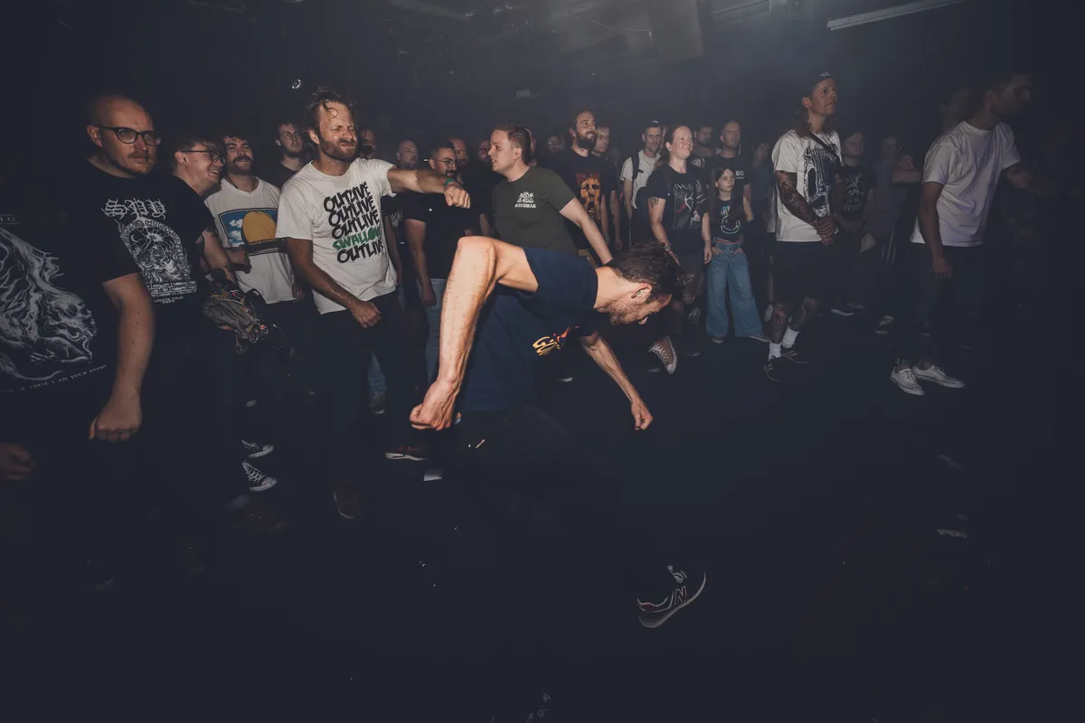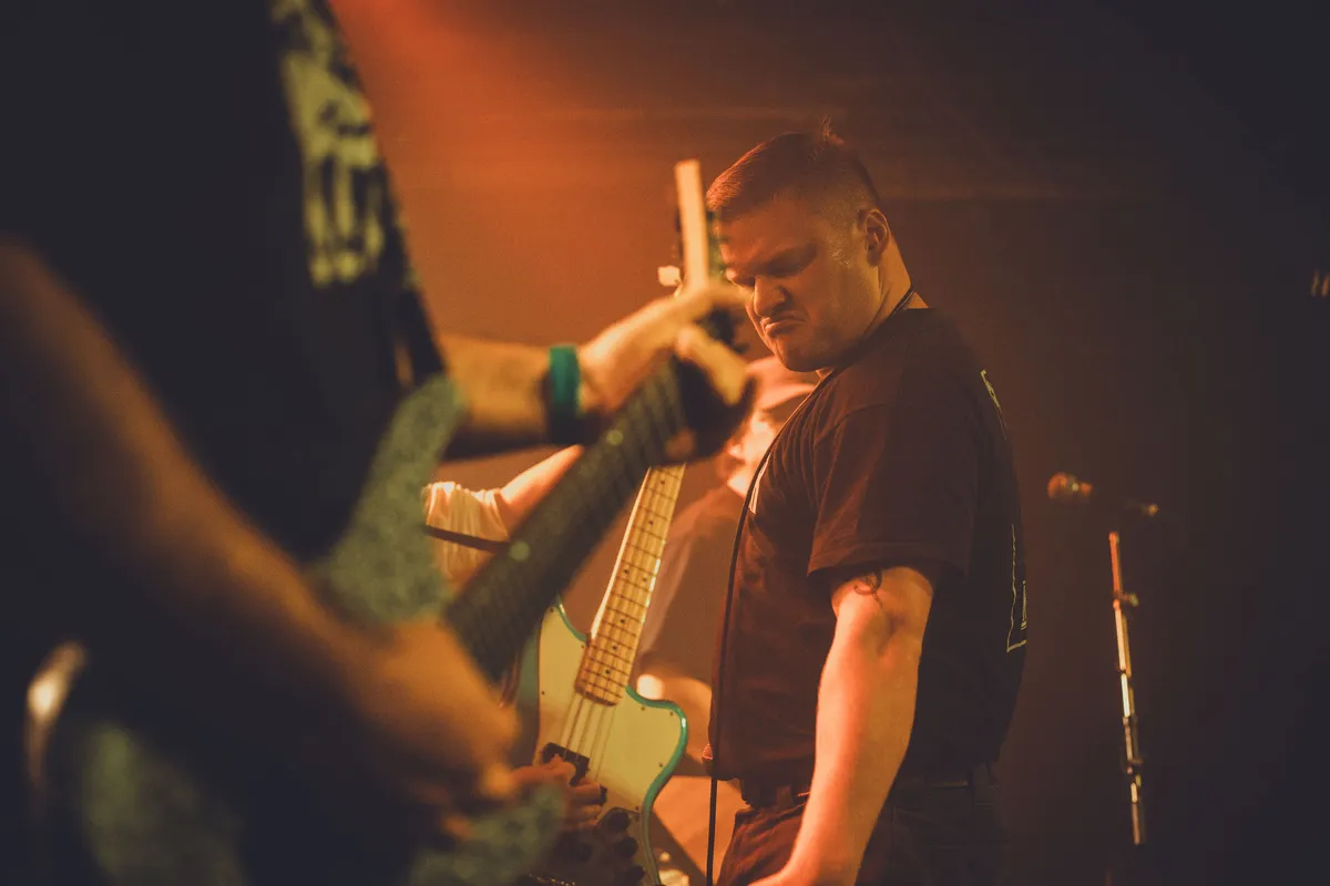 Als je vanaf Station Zuilen aan komt lopen is de verandering rondom dB’s groot. Bouwbarakken en -trailers zijn verrezen rond het pand en grote spandoeken geven de verhuizing naar de nieuwe locatie aan. De zaal gaat hier echt weg: een pijnlijke realisatie die steeds dichterbij komt. Maar zover is het nog niet, want ook band aan huis Terzij de Horde speelt nog een afscheidsshow. Voor deze zondagmatinee nemen ze twee bevriende bands uit België mee.