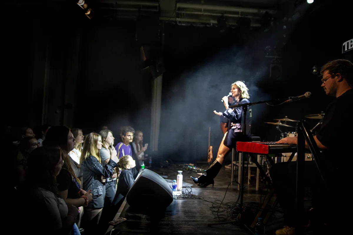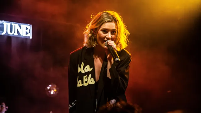 Ze weet wat ze waard is en hoe ze op het podium moet staan. Natuurlijk moeten haar songs worden verkocht, maar haar aanpak voelt eerlijk. Ze is onbevangen en straalt oprechtheid uit. Tussen de nummers door deelt ze persoonlijke verhalen die niet alleen vermaken, maar ook raken. Zo vertelt ze over de spanning rond de kaartverkoop voorafgaand aan deze show, en hoe overweldigend het is om uiteindelijk voor een volle zaal te staan. Ze heeft inmiddels een eigen community opgebouwd: de Junies.