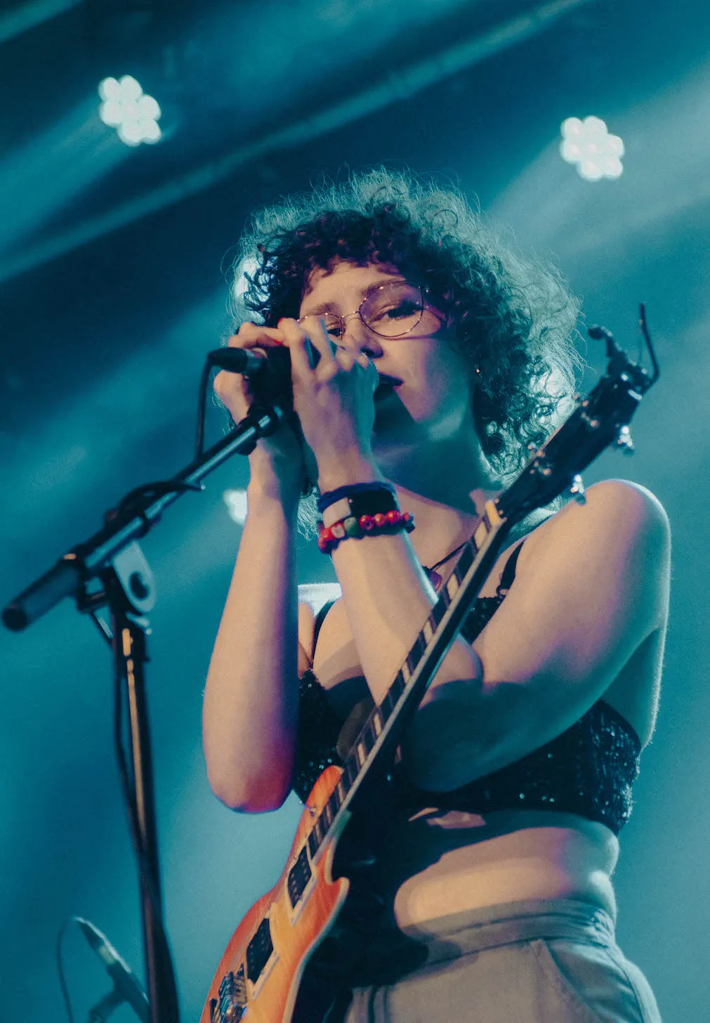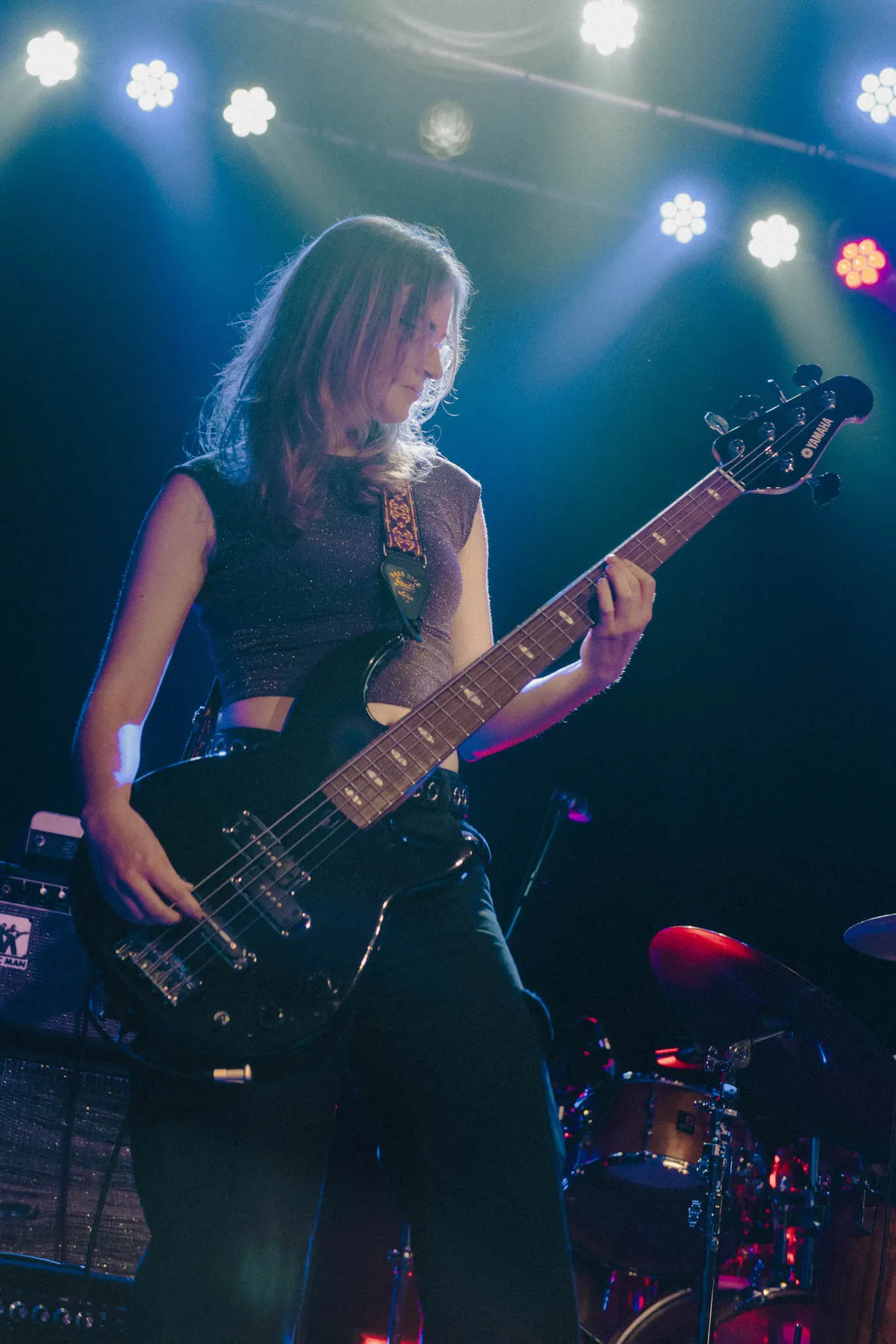 Halverwege laat drumster Katherina Bornefeld zich tijdens het nummer ‘Wheel’ van een andere kant zien: ze zingt terwijl ze percussie speelt. Het ritme en haar stem verweven zich tot een patroon waarin de chaos even tot adem komt, en het publiek op een hypnotiserende manier wordt meegezogen in het verstrijken van de tijd.