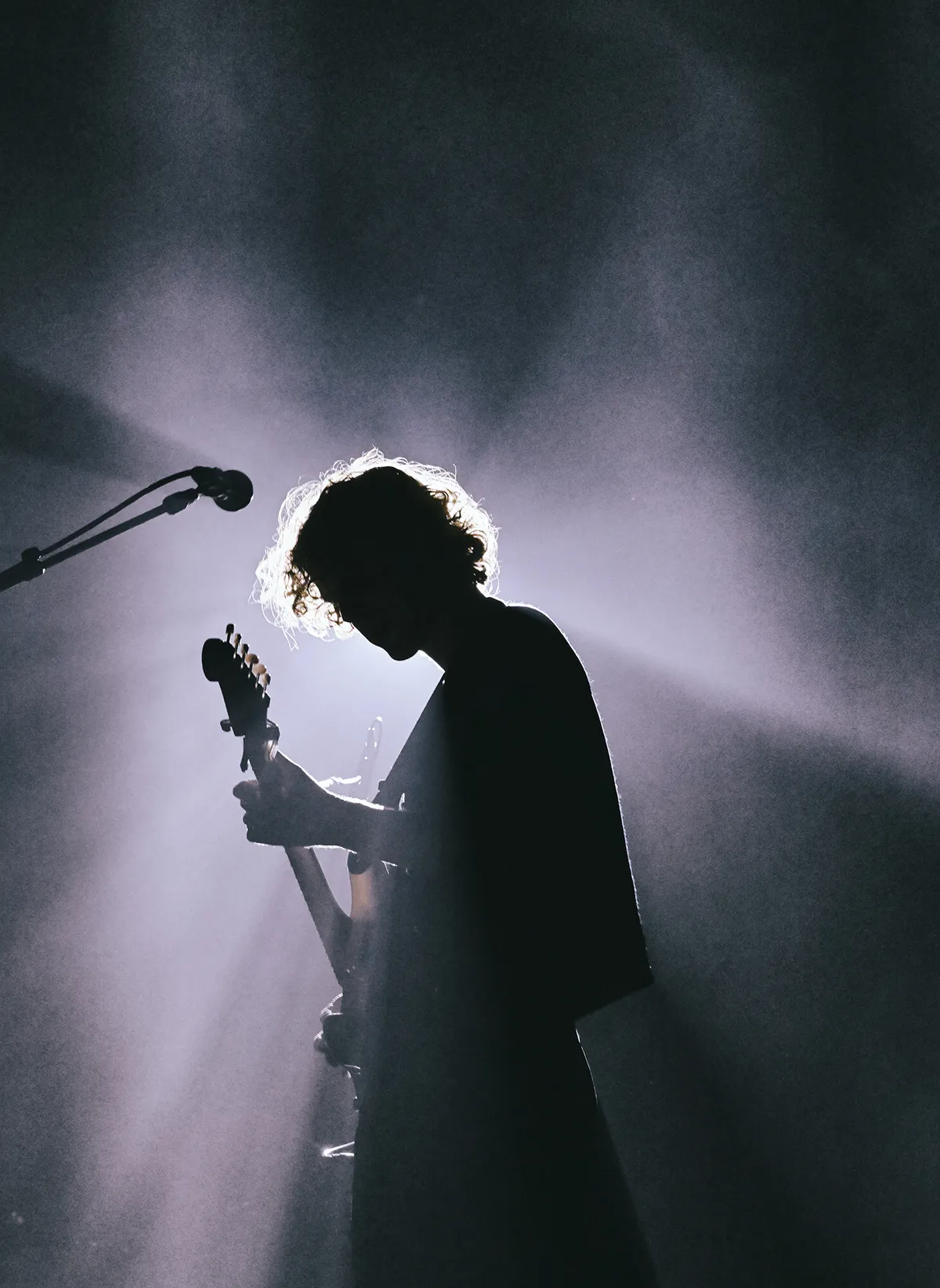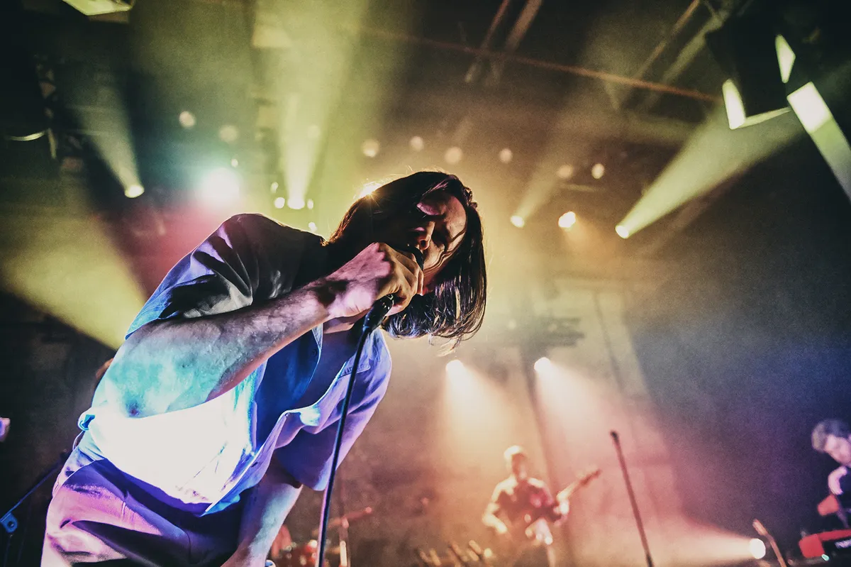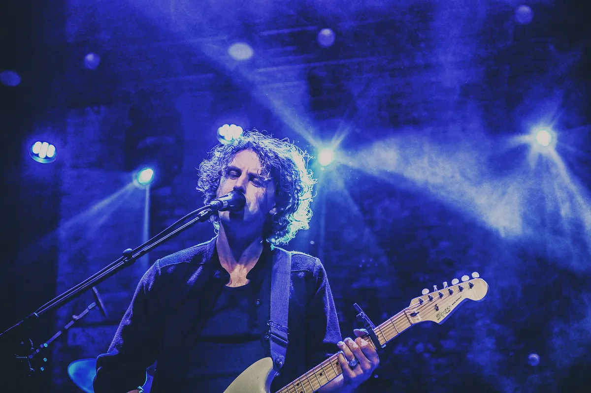 We beginnen ze al vroeg te rapen: bij Elias, de support van dienst. Alleen op het podium, maar gewapend met een gitaar, een loopingstation, een drumcomputer en een handvol prettig ontspoorde effecten, bouwt hij laag na laag aan een mistbank van geluid. Een dik halfuur lang zweven begin en einde van songs ergens tussen intentie en toeval: houvast is er amper, creativiteit des te meer. Niet elk detail komt even scherp door — het geluid werkt niet altijd mee — maar dat hier iemand staat die meer doet dan liedjes spelen, staat als een paal boven water.