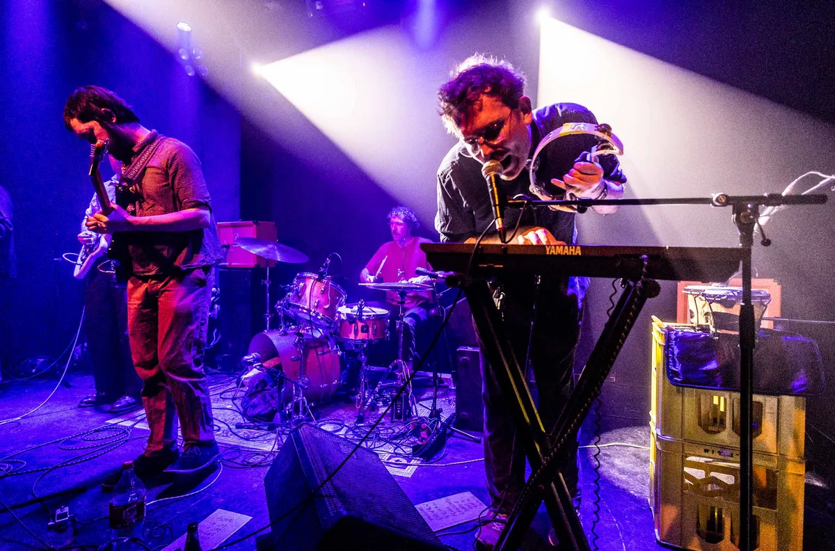 Eerst luisteren we naar een voorprogramma dat op het laatste moment het postpunk viertal KIEFF vervangt. Mo Bedick is een psychedelische dreampopband die ooit startte als een solo project, maar is doorgegroeid naar sterke live optredens. Met wat experimenteel gebruik van stemvervorming en zweverige ritmes versmelten ze genres als jazz, punk en garage. Een dromerige sfeer die als het goed is snel zal worden verstoord door de haakse ritmes van The Cool Greenhouse. Het Britse vijftal laat ons echter wat langer wachten dan verwacht. Gelukkig maakt hun geestige charme dit direct meer dan goed.