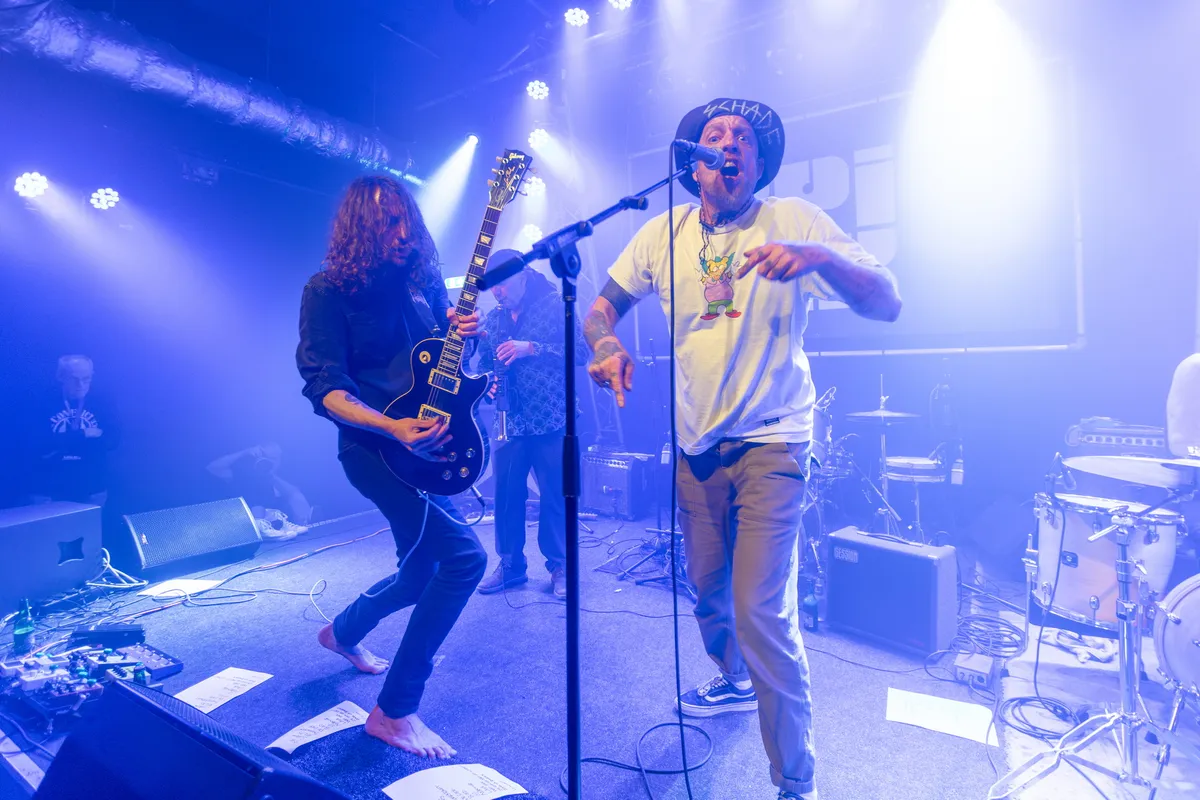 Schade schakelt moeiteloos tussen stijlen. In ‘Atlas’ duikt de band richting rock-’n-roll en bezingt Kubus de alledaagse moeiten. Even later volgt een knipoog naar Blondie met de regel “One way or another, I’m gonna find you”, waarna ‘Superkracht’ van ingetogen naar explosief groeit. ‘C-O-D-E’ gaat over de regels en maskers waar we ons achter verschuilen en eindigt in een muur van gitaargeweld. Met klassieker ‘Bloed’ wordt de hypocrisie van de consumptiemaatschappij nog eens onder de loep genomen. De ritmesectie van drummer Frank Beerens en bassist Slechtvalk houdt alles stevig bij elkaar, terwijl de band er geregeld wild uit vliegt. Van het zwoele ‘69’ tot het gruizige ‘Maktub’ en het vurige ‘Lava’, een liefdeslied opgedragen aan muze Lisa. Tegen het einde volgt een kleine medley met ‘Ze ziet er niet uit’ en daarna ‘Hoofdsdolheid’, over een manische episode. Schade sluit opzwepend af – en heeft er duidelijk nieuwe fans bij.