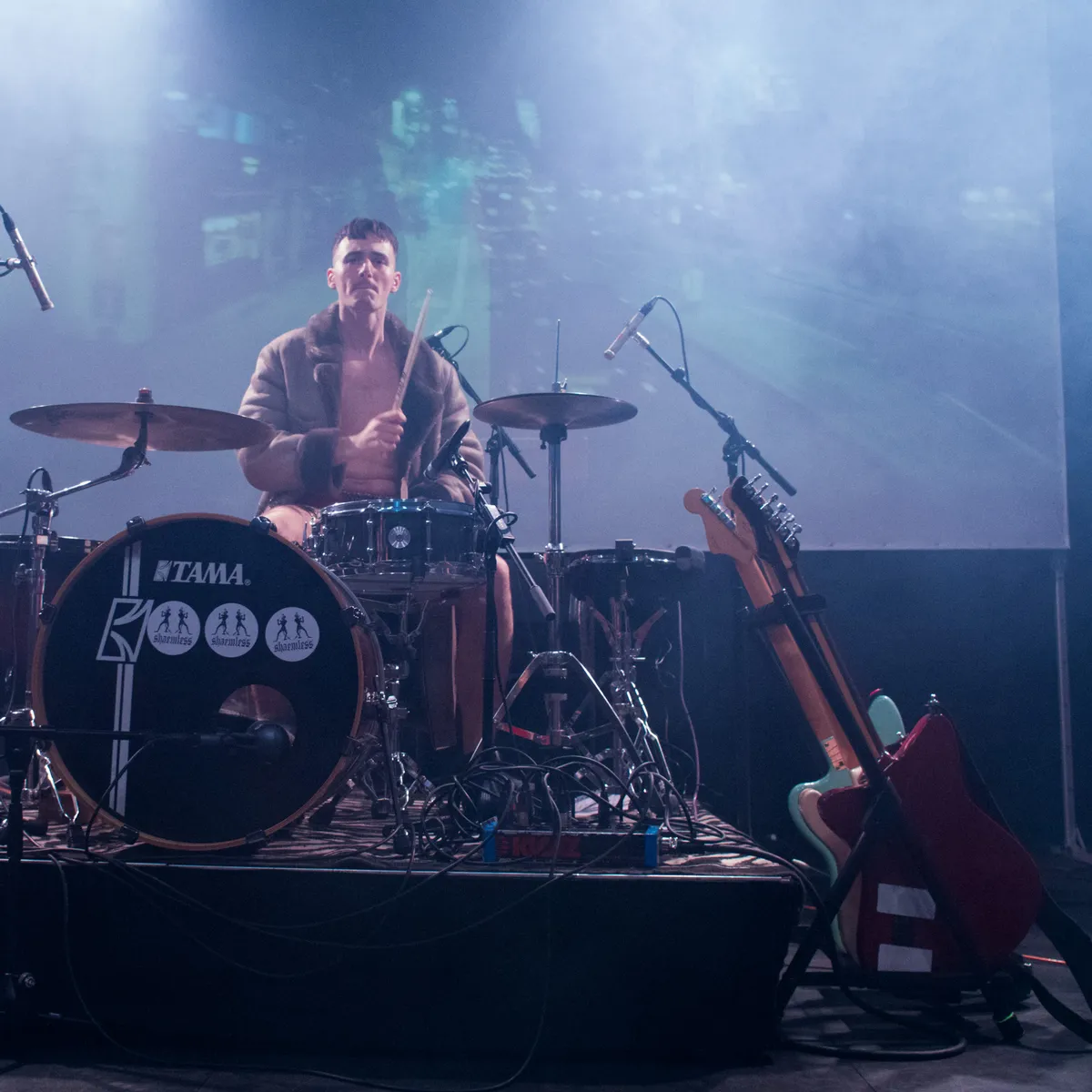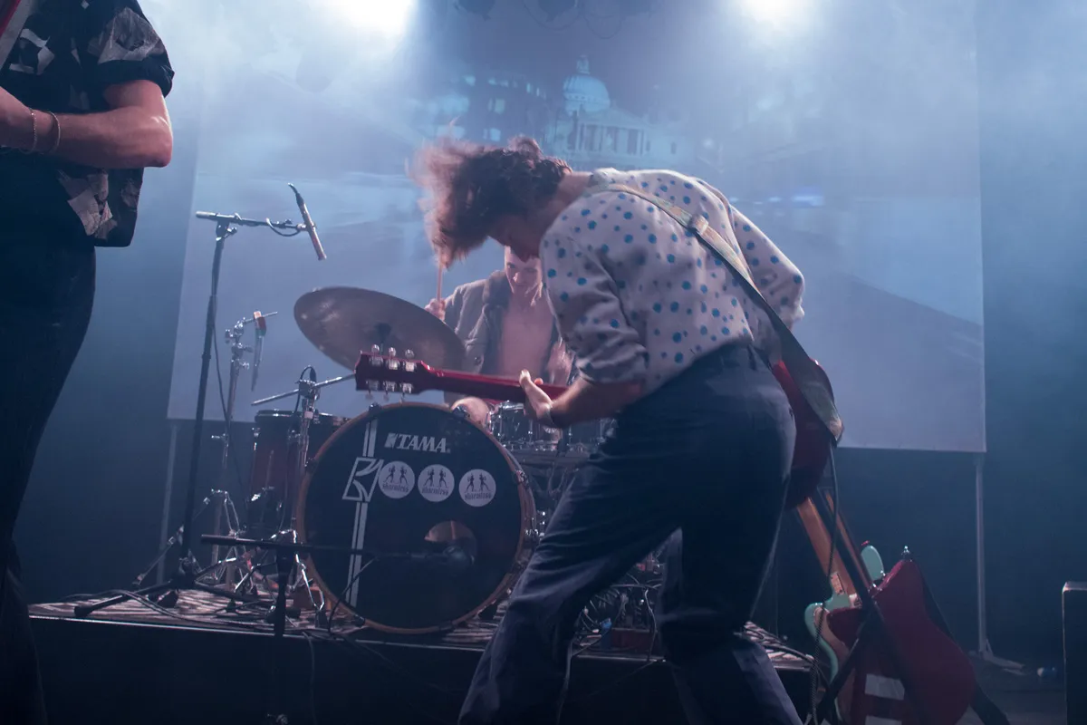 Shaemless trapt de avond af en stijgt al snel op. “Holy shit, moet je jullie eens zien man”, concludeert een tevreden zanger Daan Sturm al na een drietal nummers. De hoekige post-punk van de drie mannen gaat er goed in deze avond. Snerpende gitaren, verpakt in een goede bak galm en omlijst door een ijzersterke ritmesectie, het is de ideale combinatie om de zaal al vroeg aan het dansen en moshen te krijgen. De songs zijn bevlogen, urgent en strak gespeeld. De setlist beslaat hun reeds uitgebrachte ep's, debuutalbum SUUZ en nieuw werk. Dat nieuwe werk zal wel nog even op zich laten wachten voor we het thuis kunnen luisteren want, zo deelt Daan ons mee, de plaat is nog niet af. Producer Simon Akkermans is er nog mee bezig maar wat we hier vanavond hoorden maakt ons absoluut nieuwsgierig.