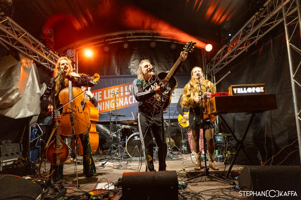 Tripkip doet vooral het eerste deel van hun naam eer aan. Van lekkere houseknallers tot stampende Goa-trance met een flamencogitaartokkel en flitsende percussie. Je hoort het allemaal. Trippen dus. Toegegeven, wij dachten voorafgaand aan een groep feestbeesten die vooral op showelement zou scoren, dus opblaaskippen en een hoog confetti-gehalte. Niet dus.
