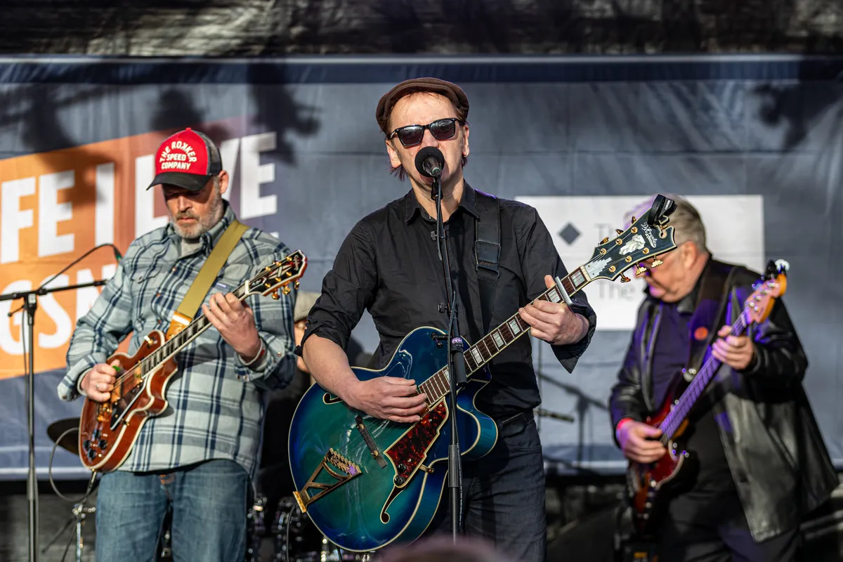 Kopsmart speelt zijn nummers vandaag met enthousiasme en net even wat anders dan op de plaat. Dat moet ook wel zonder het koper van Allard dus, maar dat maakt niets minder. Dan weer een prima ska-vibe, dan weer country of Calexico-achtige sounds. Vooral ook veel lekkere wahwah van gitarist Remco die met het warme geluid van zijn gitaar goed diepte geeft aan de nummers. Drum en bas doen hier wat ze moeten doen, en de metalen snaren van Arie’s semi akoestisch slaggitaar maken het geheel wat lichter. “Scheveningen Blues!”, schreeuwt iemand herhaaldelijk uit het publiek. Die man heeft wel een punt. Wellicht is Kopsmart een genre op zichzelf en moeten we dat Scheveninger Blues noemen. Verder niet meer duiden en lekker naar de goede nummers luisteren.