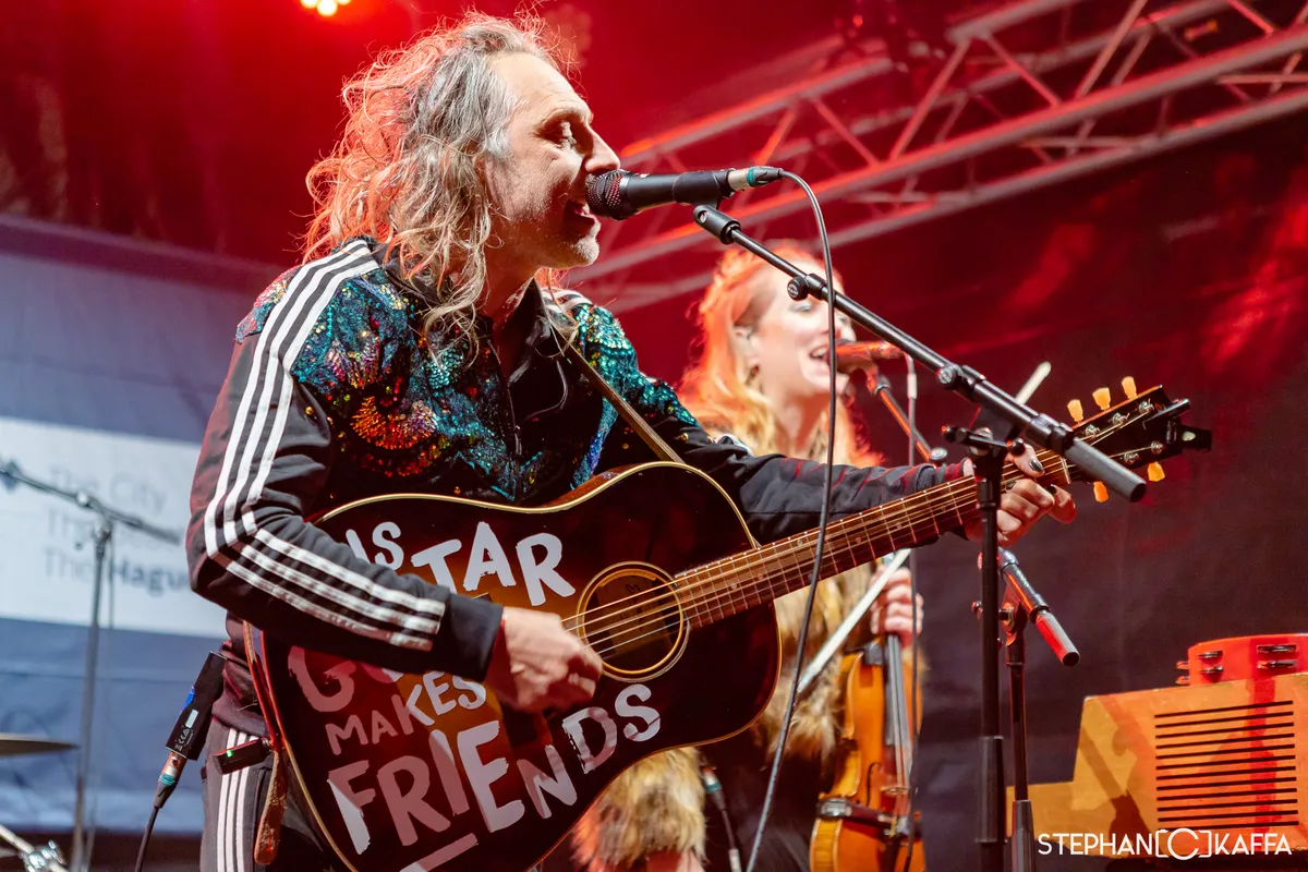 Een band die mooi aansluit op het werk van BLUAI is het Haagse Yellofox. Iets later dan gepland zet de band het eerste akkoord in bij de Hofvijver. Ook hier is de soundcheck niet vlekkeloos verlopen, wat voor het grote aantal instrumenten in deze show nogal een probleem kan worden. “We moeten het er maar mee doen.” Frontman Marc Mosmans haalt zijn schouders op. Zonde, want het vioolspel van Pauline is nauwelijks hoorbaar. Gelukkig is het enthousiasme van de band er niet minder om: met een warme energie en prachtige meerstemmige zang brengen de muzikanten hun indie-americana ten gehore. Het repertoire is divers: van de kleinere, harmonische nummers tot het meer rockende ‘The Hermit’ en energie afsluiter ‘Feels like a Malibu day to me.’ We voelen door deze Haagse hippies met een gezonde dosis rock ‘n roll bijna niet dat het is begonnen met regenen.