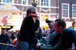 Achter het podium wordt de Grote Kerk afwisselend uitgelicht. Het is een prachtig plaatje dat ons doet afvragen of dit optreden, dit podium, niet zoveel gaver geweest was als dit optreden in de kerk was geweest in plaats van op het plein. We gunnen Suze Ijó een beter publiek en onszelf een plekje op de afterparty in PAARD.