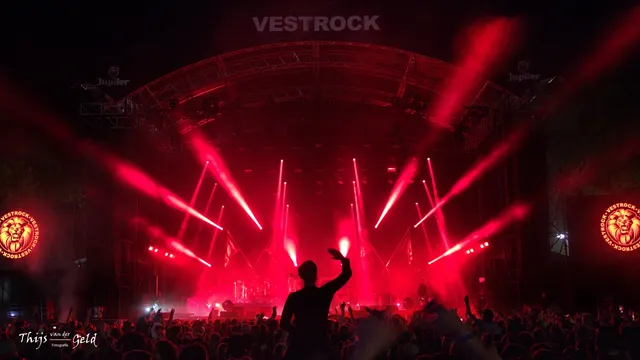 Het Nederlandse My Baby staat alweer voor de derde keer op Vestrock. Terecht, want de band heeft een geweldige live reputatie. Voor het nieuwste album ‘Sake Sake Sake’ werkte het trio samen met mixer Steve Dub en dat zorgt voor een meer elektronische dance sound. Hij werkte samen met dance acts als The Chemical Brothers, Daft Punk en afsluiter vanavond, The Prodigy. Roots en spannende, slepende psychedelische nummers, daar kenden we dit trio van. Deze show is weer een trip, met uitgesponnen nummers waarin gitaren en drums nog steeds de hoofdingrediënten zijn. Al proef je ook andere, nieuwe smaken. My Baby benut de lichtshow en het enorme LED-scherm ook optimaal. Al heeft de band dat niet nodig, het is wel sfeervol en groots nu de zon onder is. Vestrock blijft goede zin houden en pas op de plaats en stilstaan is onmogelijk bij My Baby.