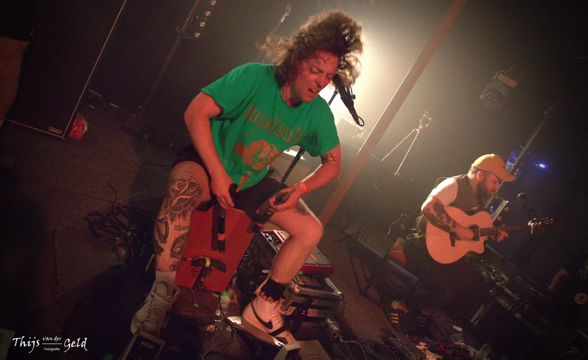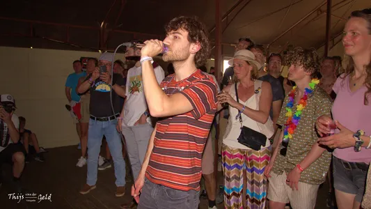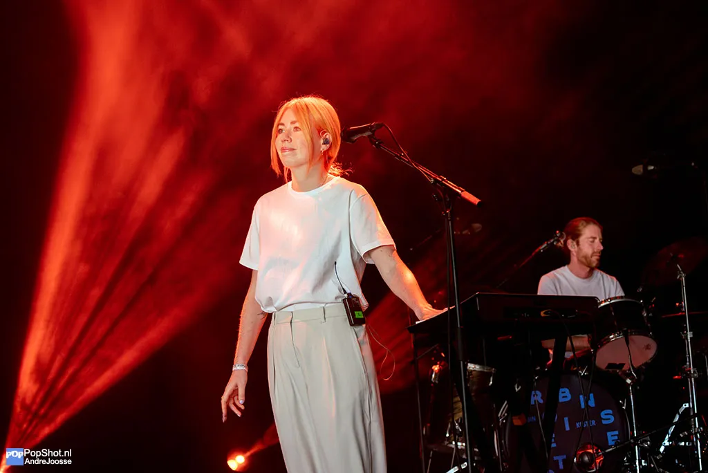 Voor MEROL is het geen half vijf ’s middags, maar al stapavond. In licht pastel neon verlicht op een smokerig podium brengen de beats van ‘Bendronkenlaatme’ je naar de club. De dromerige synth pop is veel pakkender met haar live band, van synths, drums en gitaar. Hoogtepunt is het tweeluik ‘Gemengde Signalen’, dat al lekker is om op te dansen, naar het veel hardere, haast gabber, ‘Mannen Met Gevoel’. Dat MEROL heel goed kan zingen, laat ze horen in het intro van ‘Het Feest Is Al Voorbij’, met zachtjes de beat van ‘Knaldrang’ eronder en in de ballad ‘Beter Als Ik Slecht Ga’. En ze maakt natuurlijk tijd voor de hits ‘Hou Je Bek En Bef Me’ en afsluiter ‘Lekker Met De Meiden’.